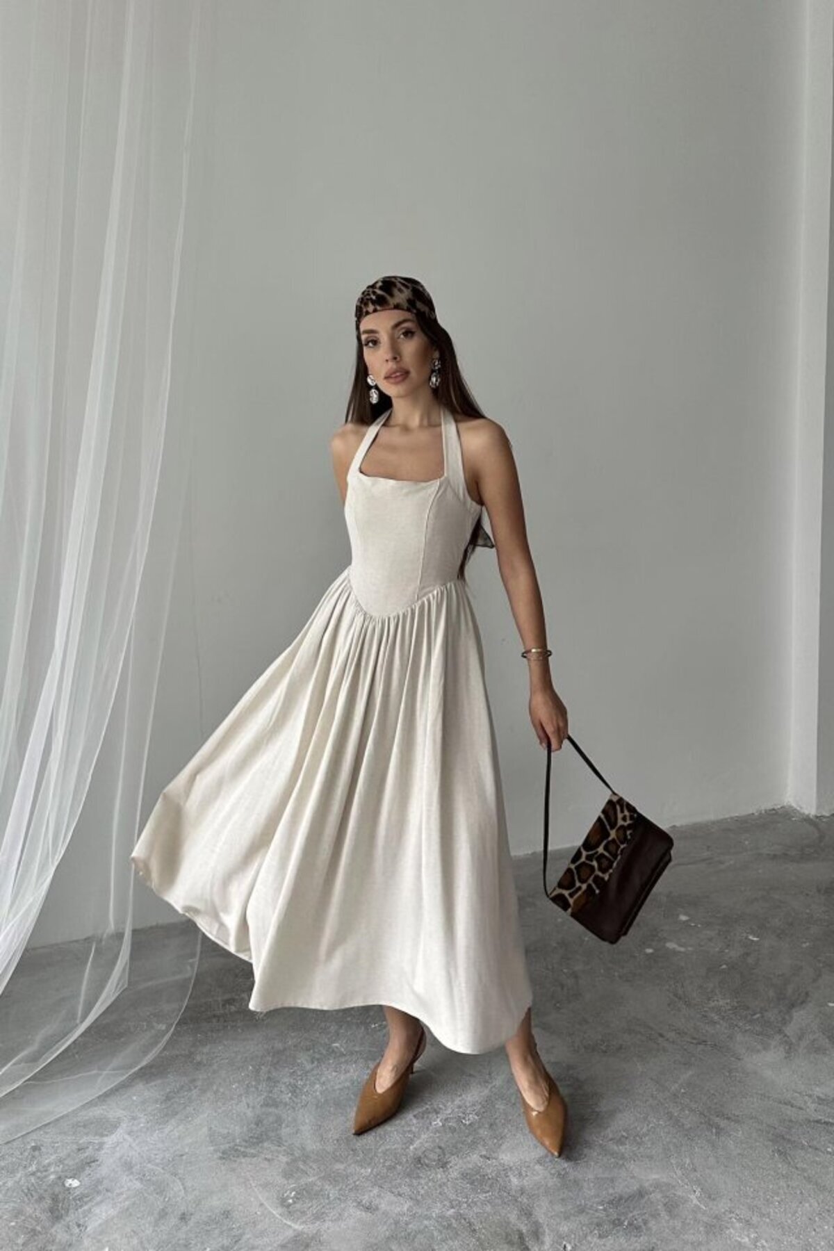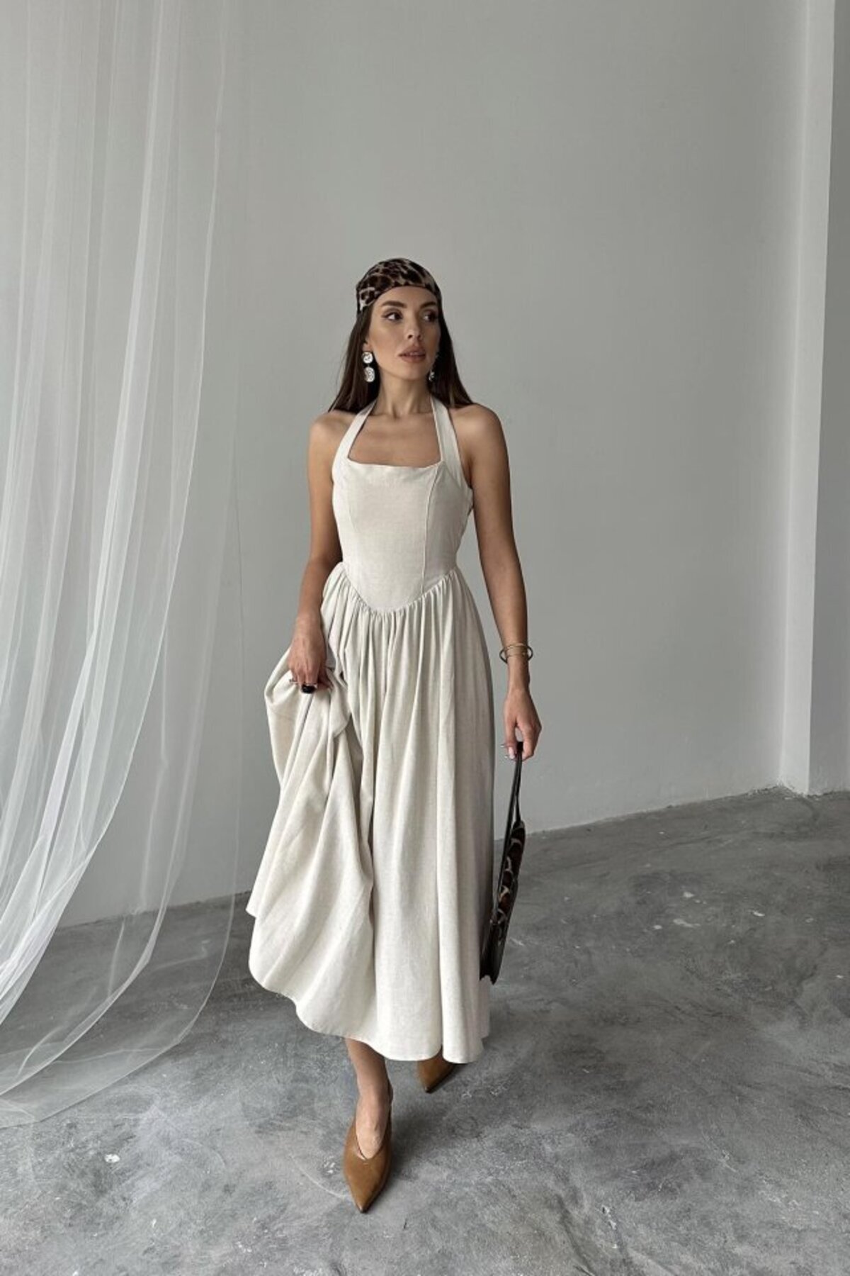 eyesof Bej Boyundan Bağlamalı Keten Elbise eyesof Bej Boyundan Bağlamalı Keten Elbise TYC465C31DD155FB5C4CEFD00 L/S