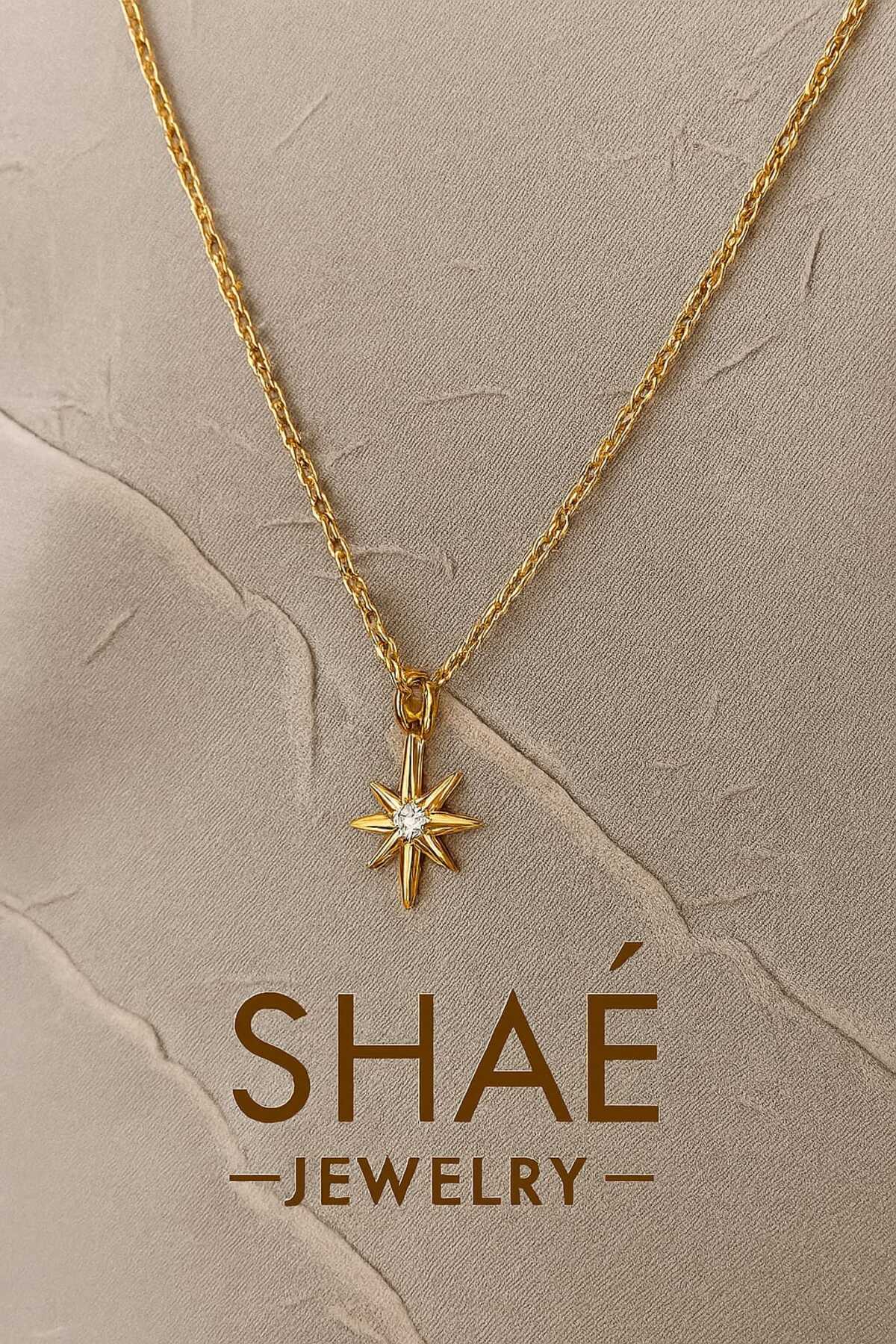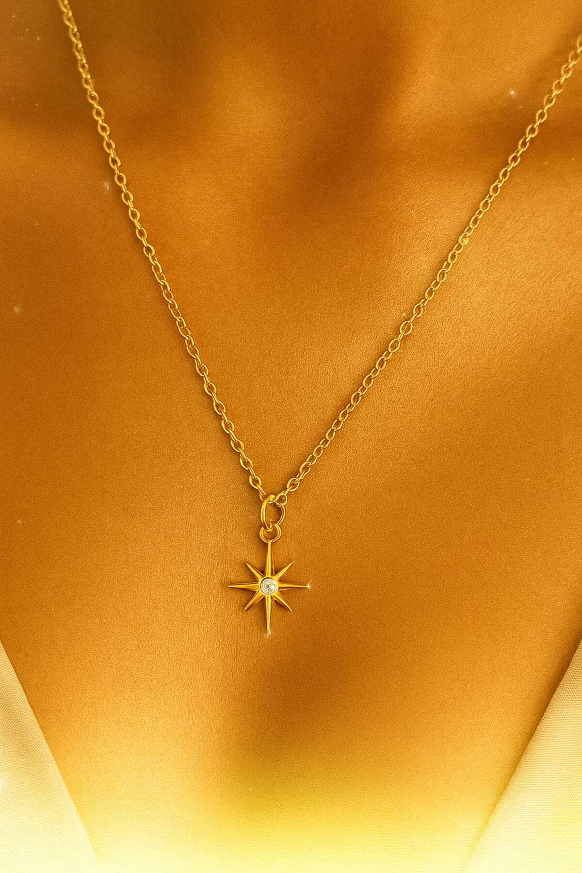 Altın Renkli Kuzey Yıldızı Tasarımlı Zirkon Taşlı Kadın Kolye Altın Renkli Kuzey Yıldızı Tasarımlı Zirkon Taşlı Kadın Kolye DSOO13 Standart