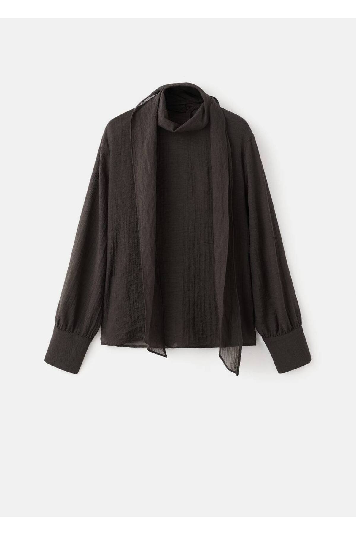 Fularlı dokulu bluz Fularlı dokulu bluz 17044138 XL