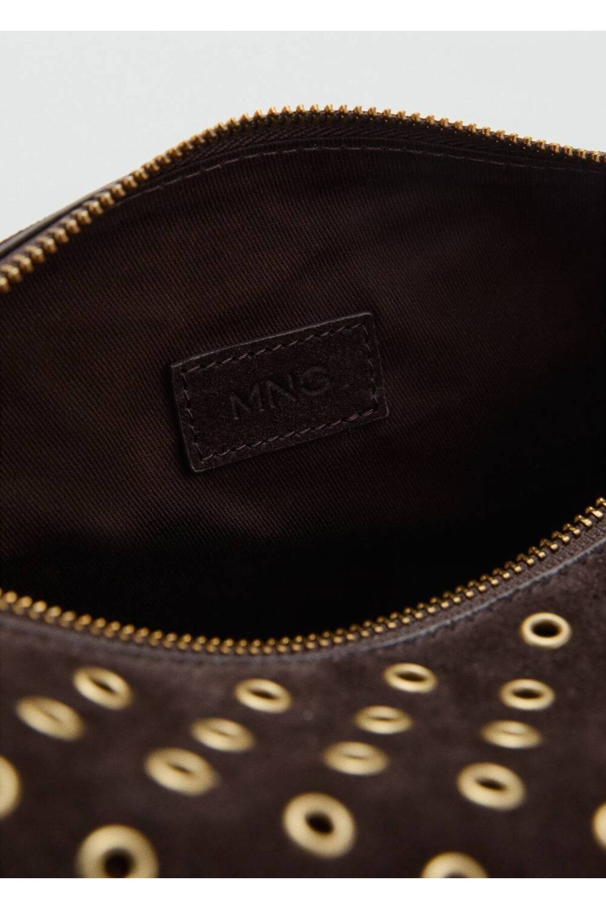 Delik detaylı süet omuz çantası Delik detaylı süet omuz çantası 17004445 تک سایز
