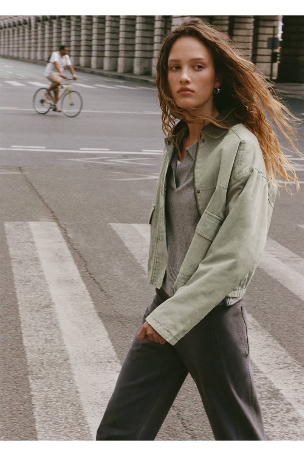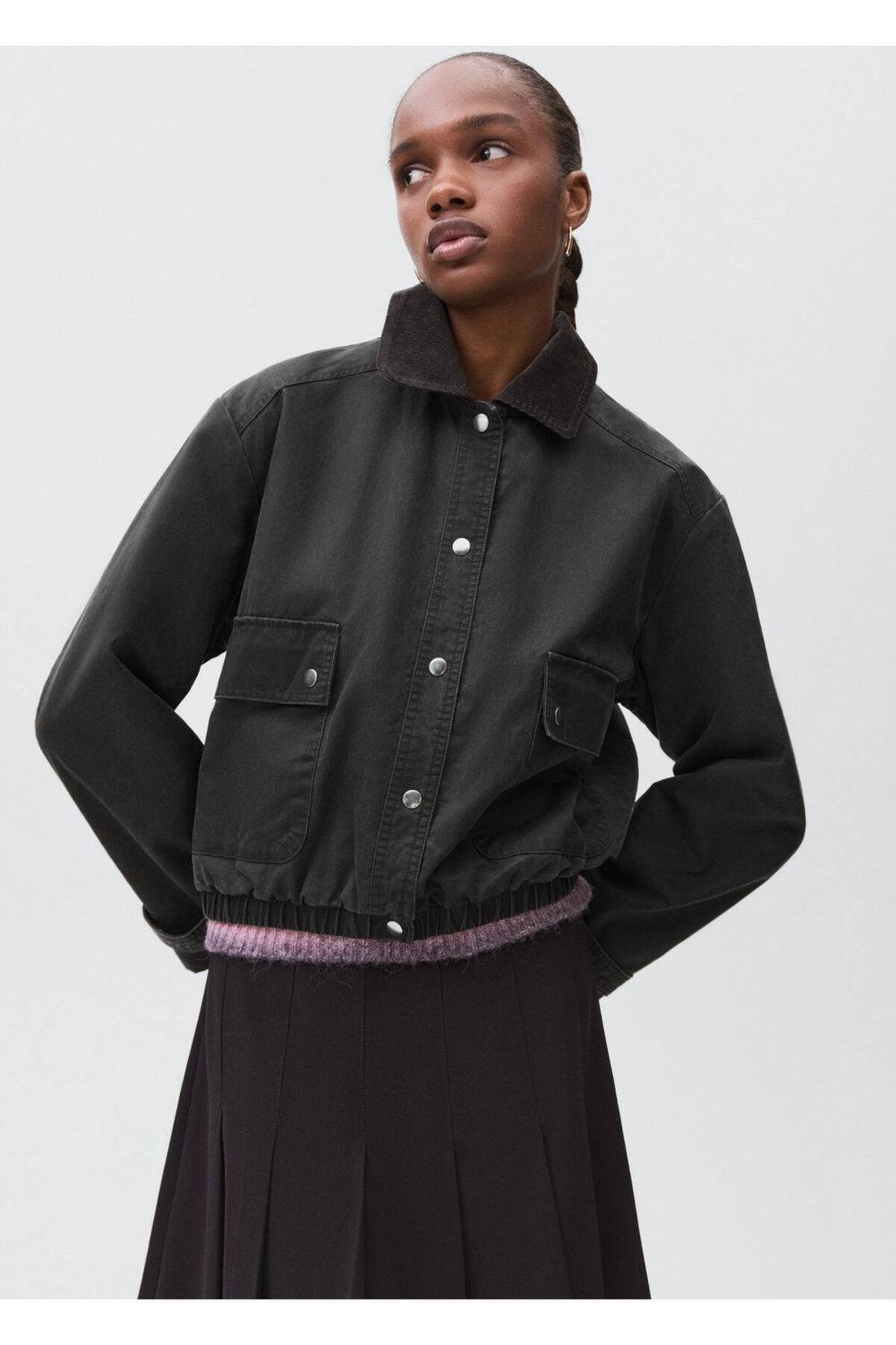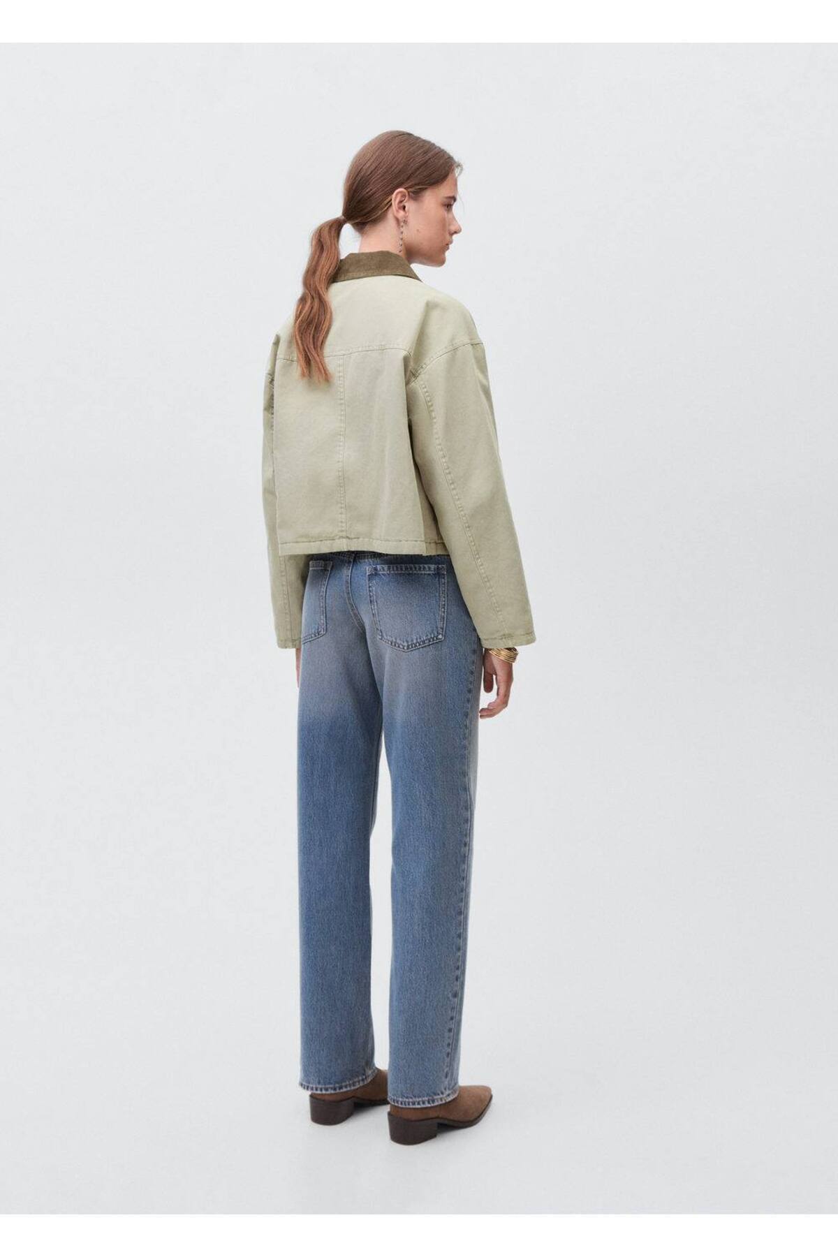 Kontrast yakalı denim mont Kontrast yakalı denim mont 17094408 L
