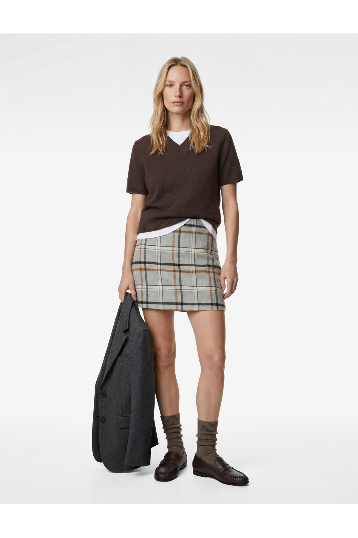 Slim Fit A Kesim Tüvit Mini Etek Slim Fit A Kesim Tüvit Mini Etek 6WAK70013EW 42