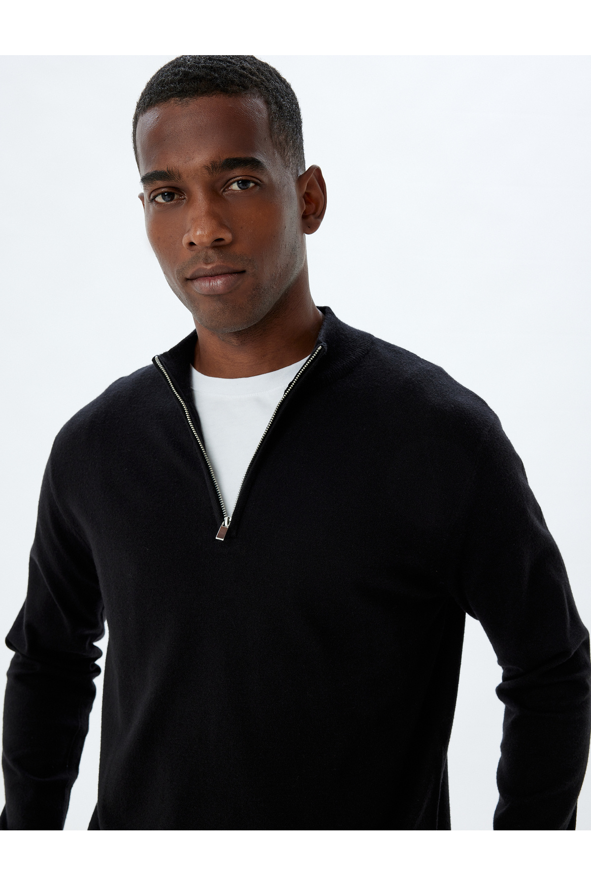 Uzun Kollu Viskon Karışımlı Yarım Fermuarlı Triko Kazak Uzun Kollu Viskon Karışımlı Yarım Fermuarlı Triko Kazak 6WAM70028HT XL