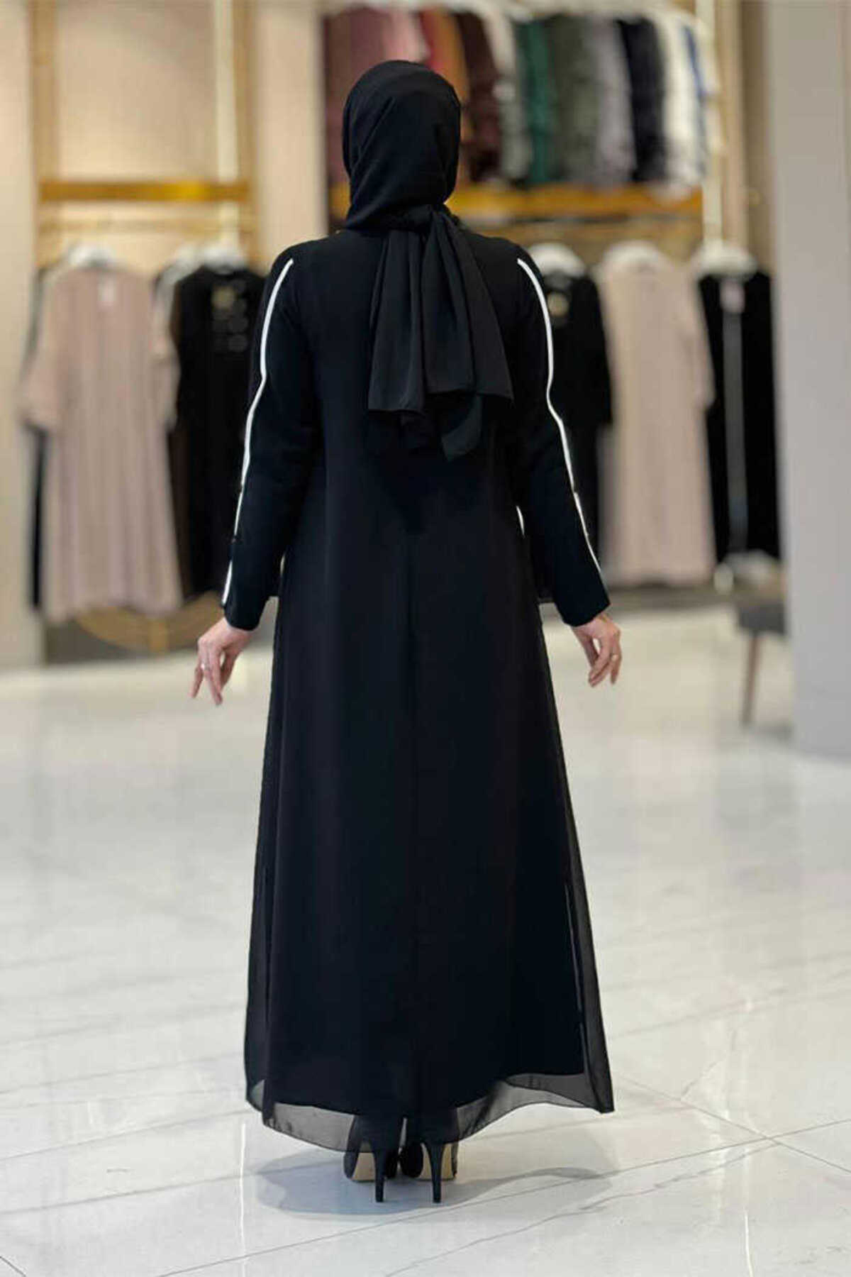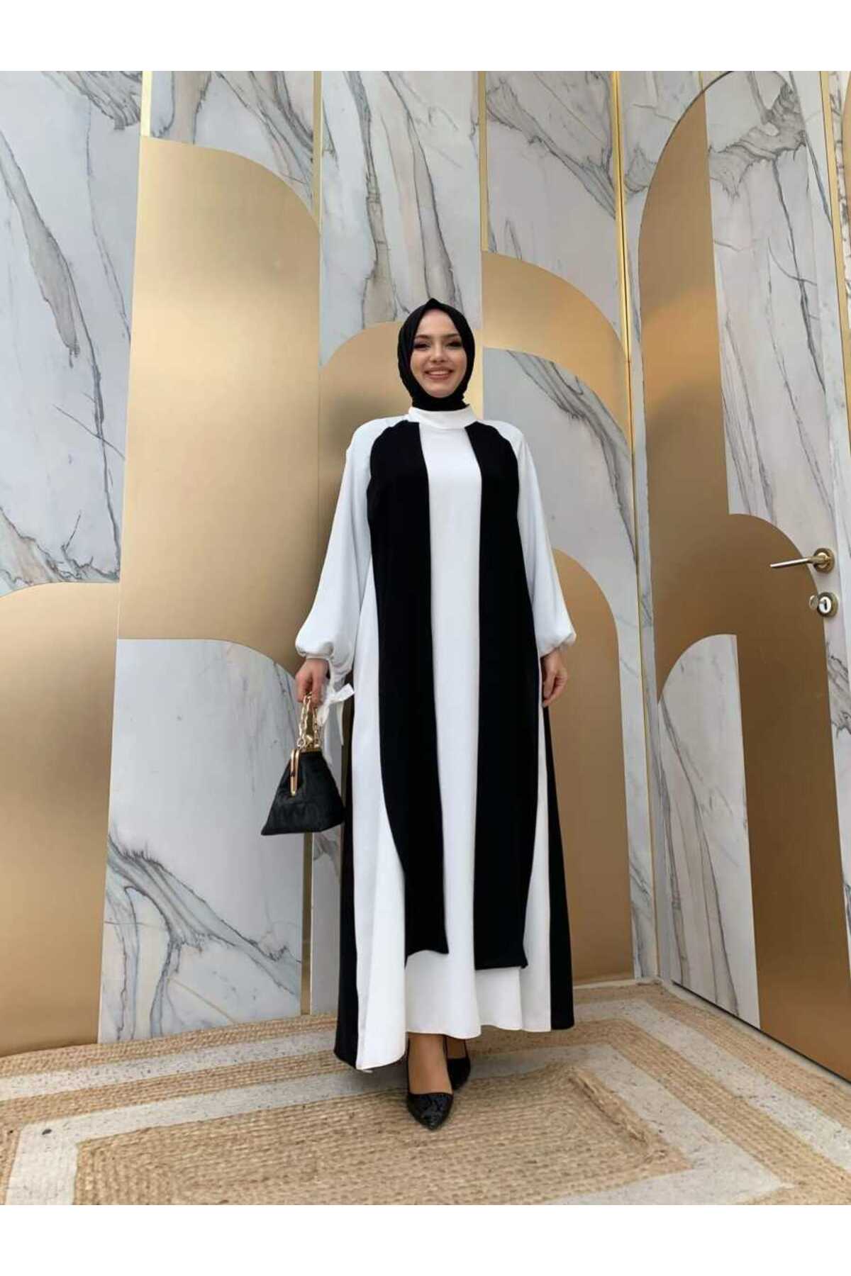 Büyük Beden Düğme Detaylı Elbise 3919-1 Siyah-Ekru Büyük Beden Düğme Detaylı Elbise 3919-1 Siyah-Ekru 58