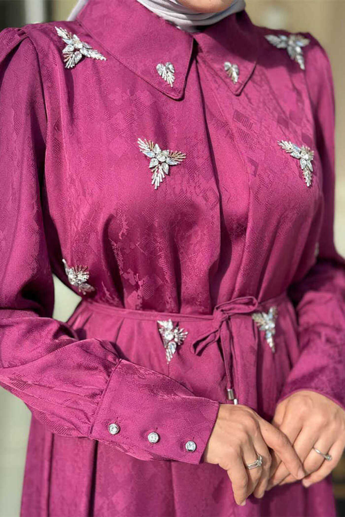 Taş Detaylı Jakar Elbise 3924 Mürdüm Taş Detaylı Jakar Elbise 3924 Mürdüm TYC00806AA6EA43153D6CA500 3