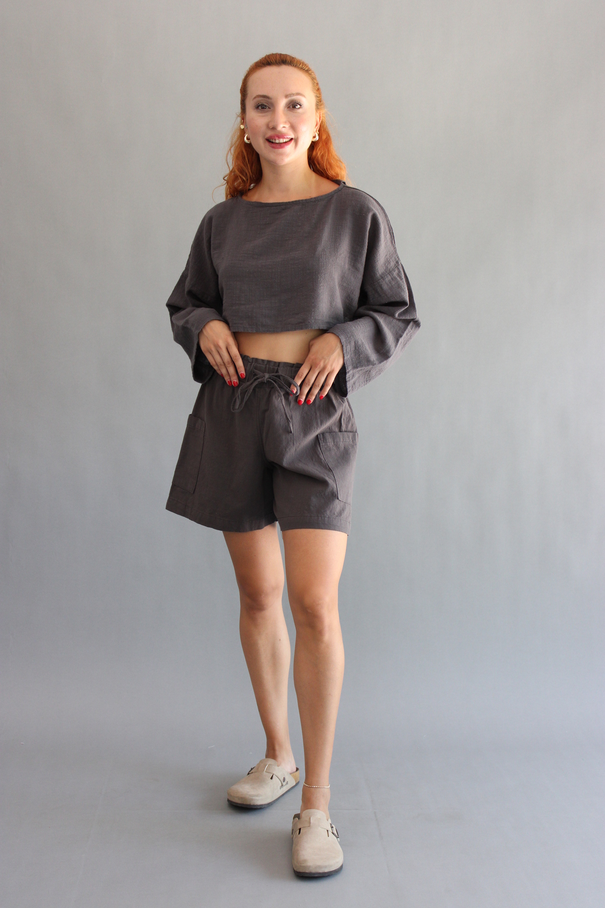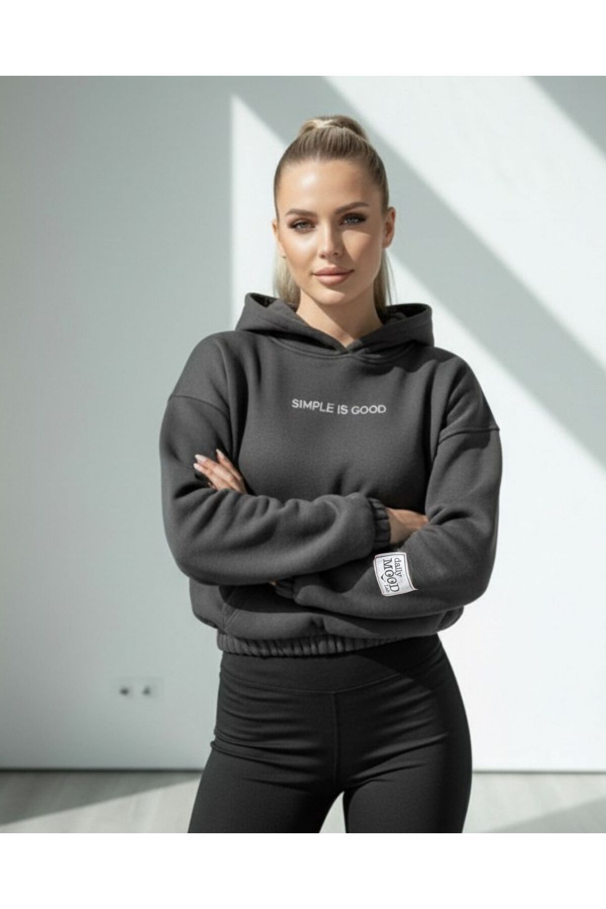 Antrasit Crop Kapüşonlu 3 İplik Şardonlu Kanguru Cepli Sweatshirt Antrasit Crop Kapüşonlu 3 İplik Şardonlu Kanguru Cepli Sweatshirt ML20011WK XL