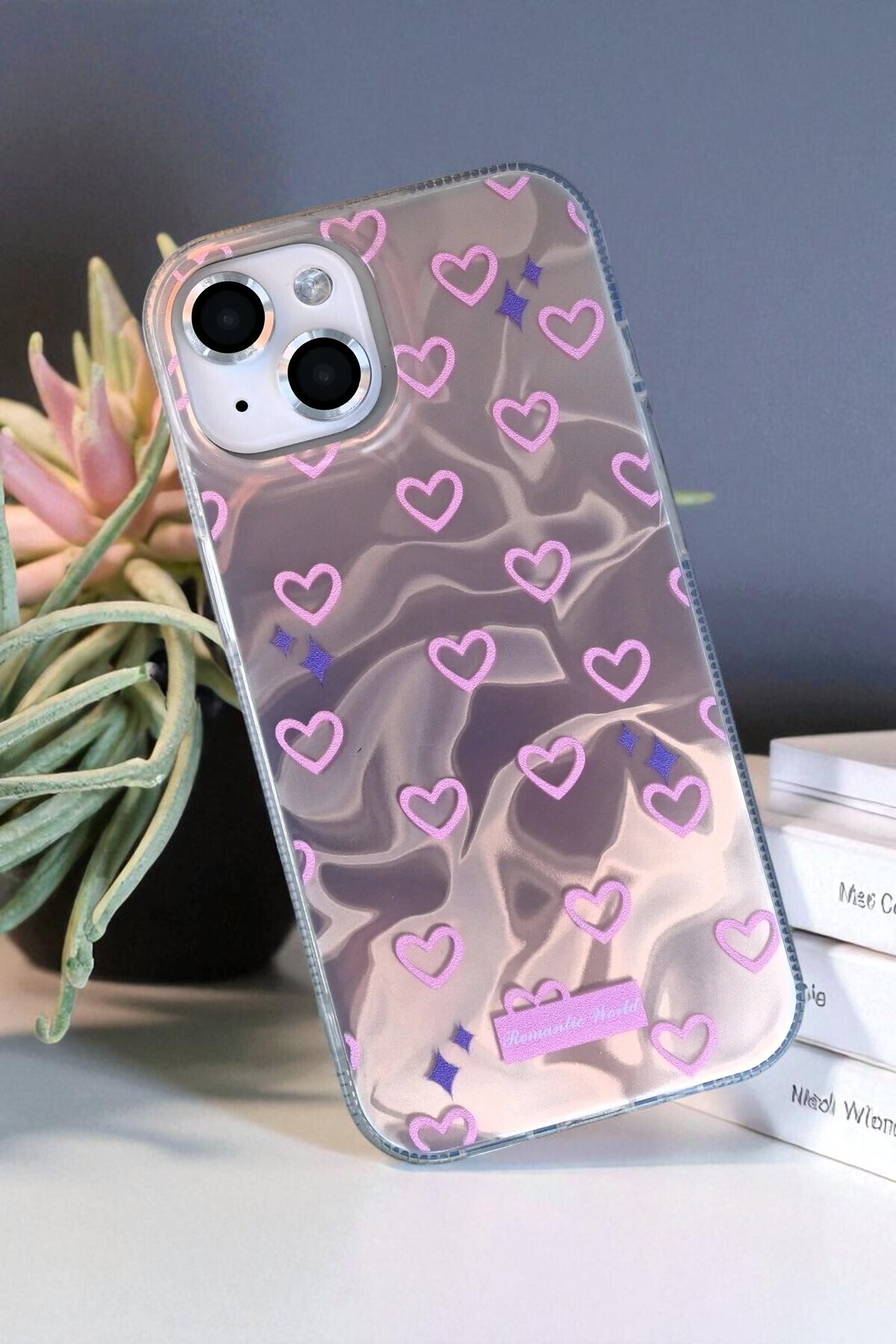 Apple iPhone 15 Uyumlu Hologram Pembe Kalp Desenli Silikon Kılıf Darbeye Dayanıklı, Kapak Apple iPhone 15 Uyumlu Hologram Pembe Kalp Desenli Silikon Kılıf Darbeye Dayanıklı, Kapak 15patlama تک سایز