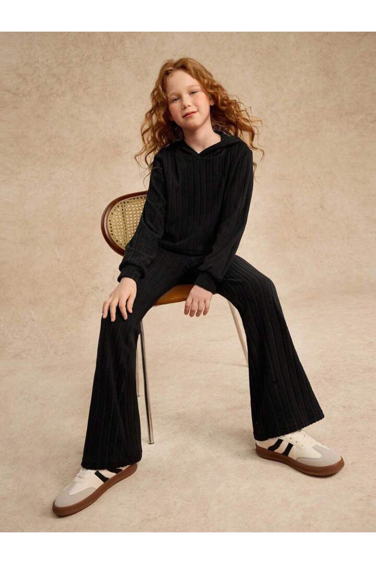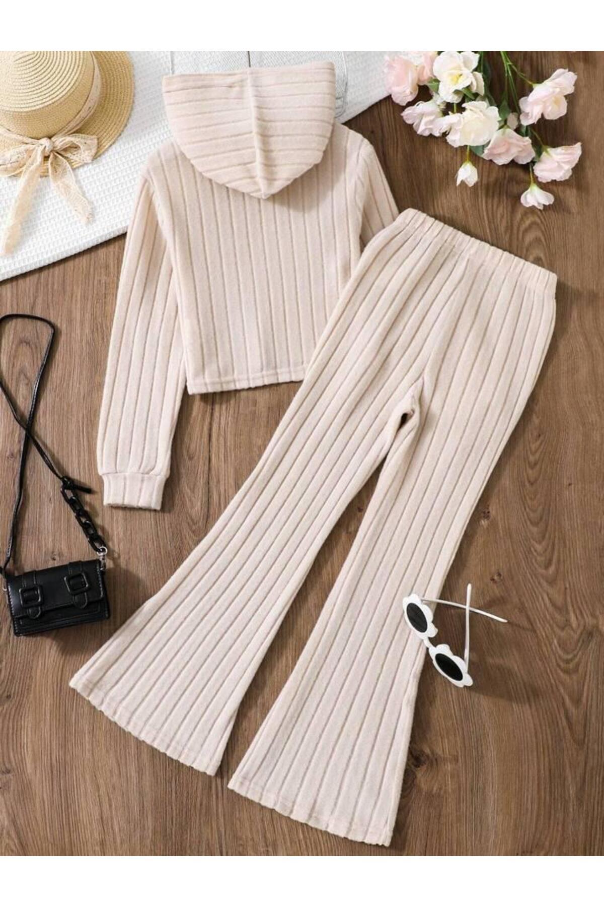 Kız Çocuk Bej Fitilli Örme Kumaş Kapşonlu Sweatshirt-İspanyol Paça Pantolon Takım Kız Çocuk Bej Fitilli Örme Kumaş Kapşonlu Sweatshirt-İspanyol Paça Pantolon Takım fitil25 13-14 Yaş