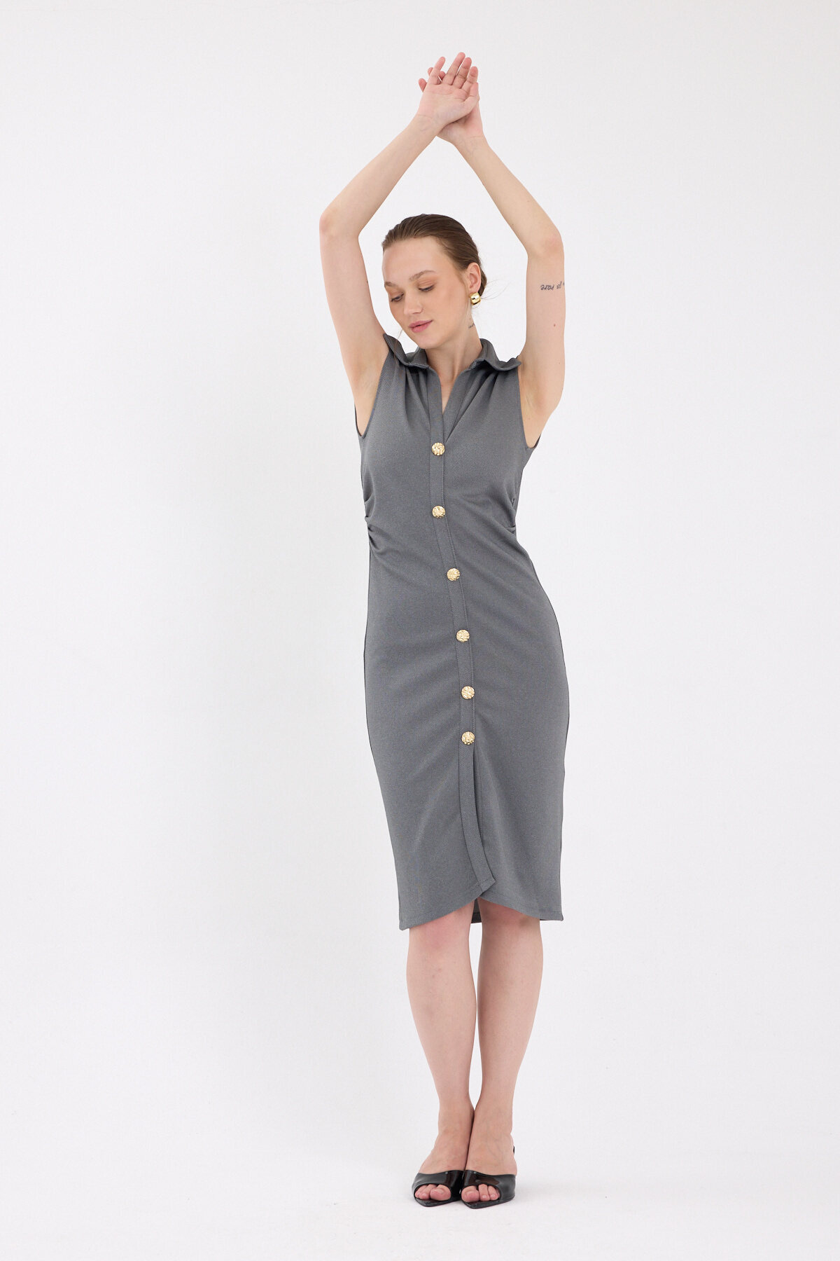 Antrasit Yanları Büzgülü Kolsuz Gömlek Midi Elbise 8117A Antrasit Yanları Büzgülü Kolsuz Gömlek Midi Elbise 8117A 26K1123UST036 42