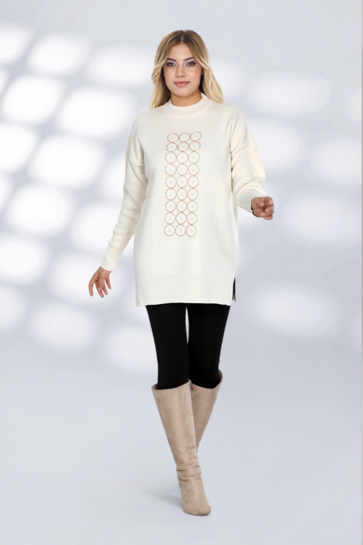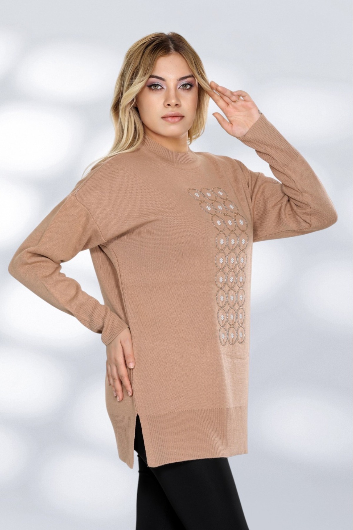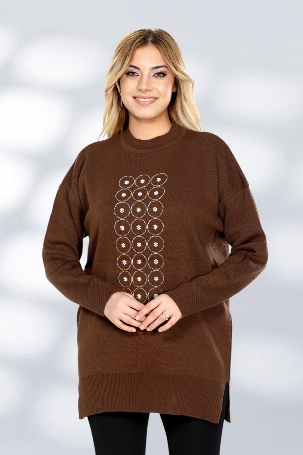 Işıltılı Taş Detaylı Uzun Triko Tunik Modern ve Rahat Kesim Işıltılı Taş Detaylı Uzun Triko Tunik Modern ve Rahat Kesim 1308 Standart
