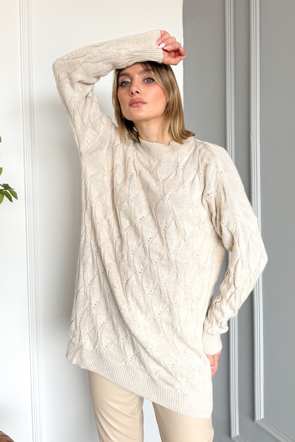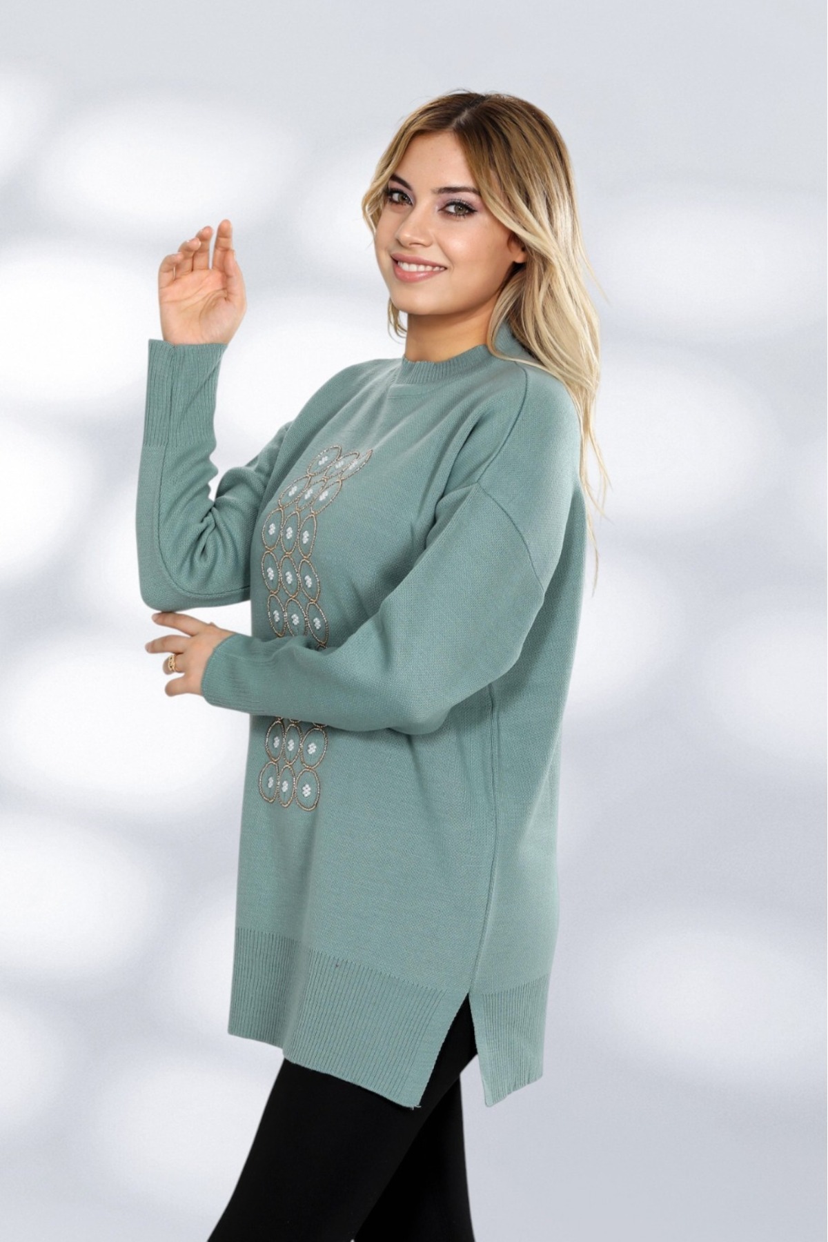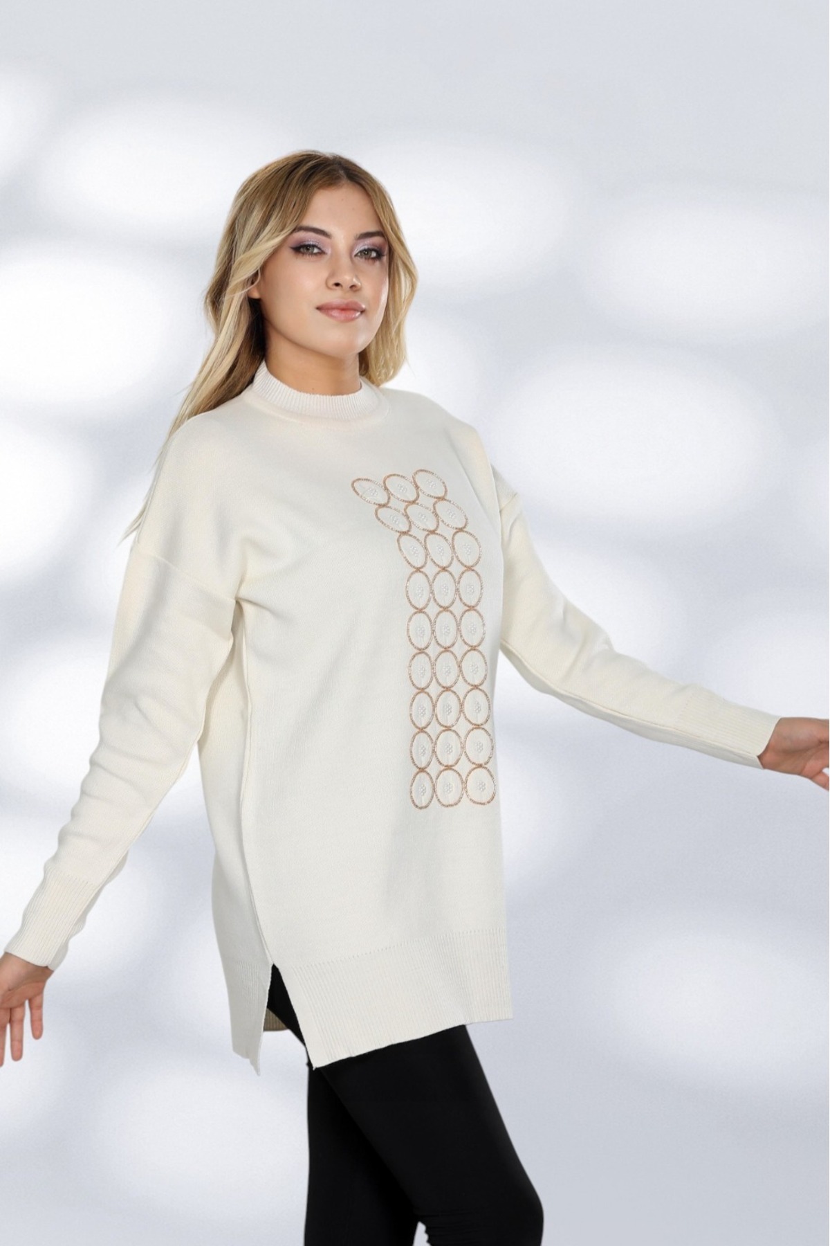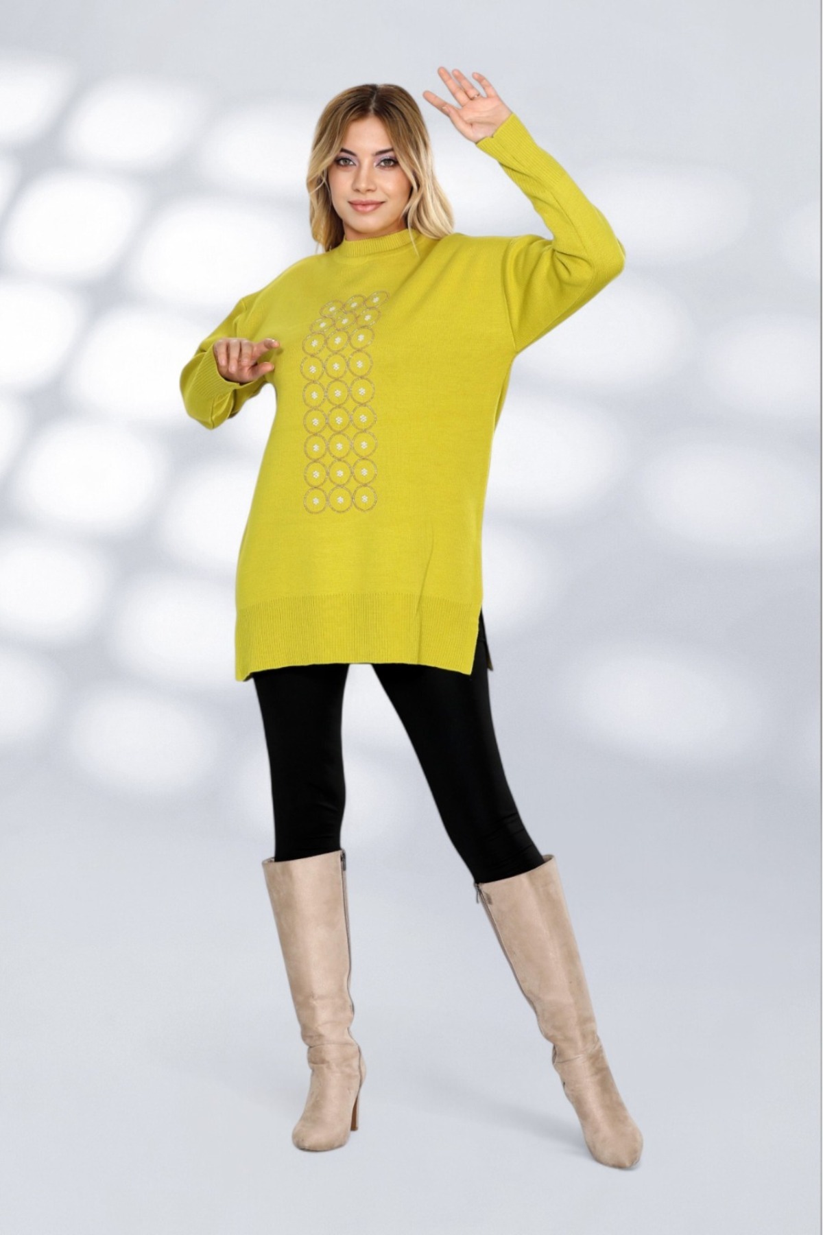 Işıltılı Taş Detaylı Uzun Triko Tunik Modern ve Rahat Kesim Işıltılı Taş Detaylı Uzun Triko Tunik Modern ve Rahat Kesim 1308 Standart