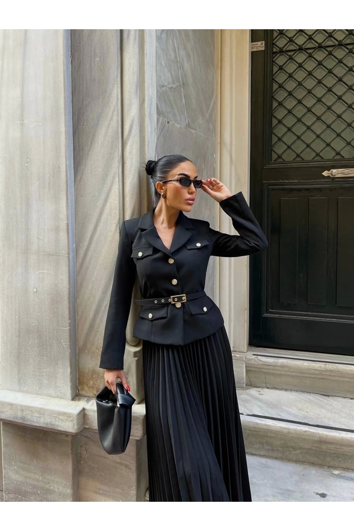 Jemy Siyah Bağlama Detay Yelek Pantolon Takım Jemy Siyah Bağlama Detay Yelek Pantolon Takım 25078597 XL