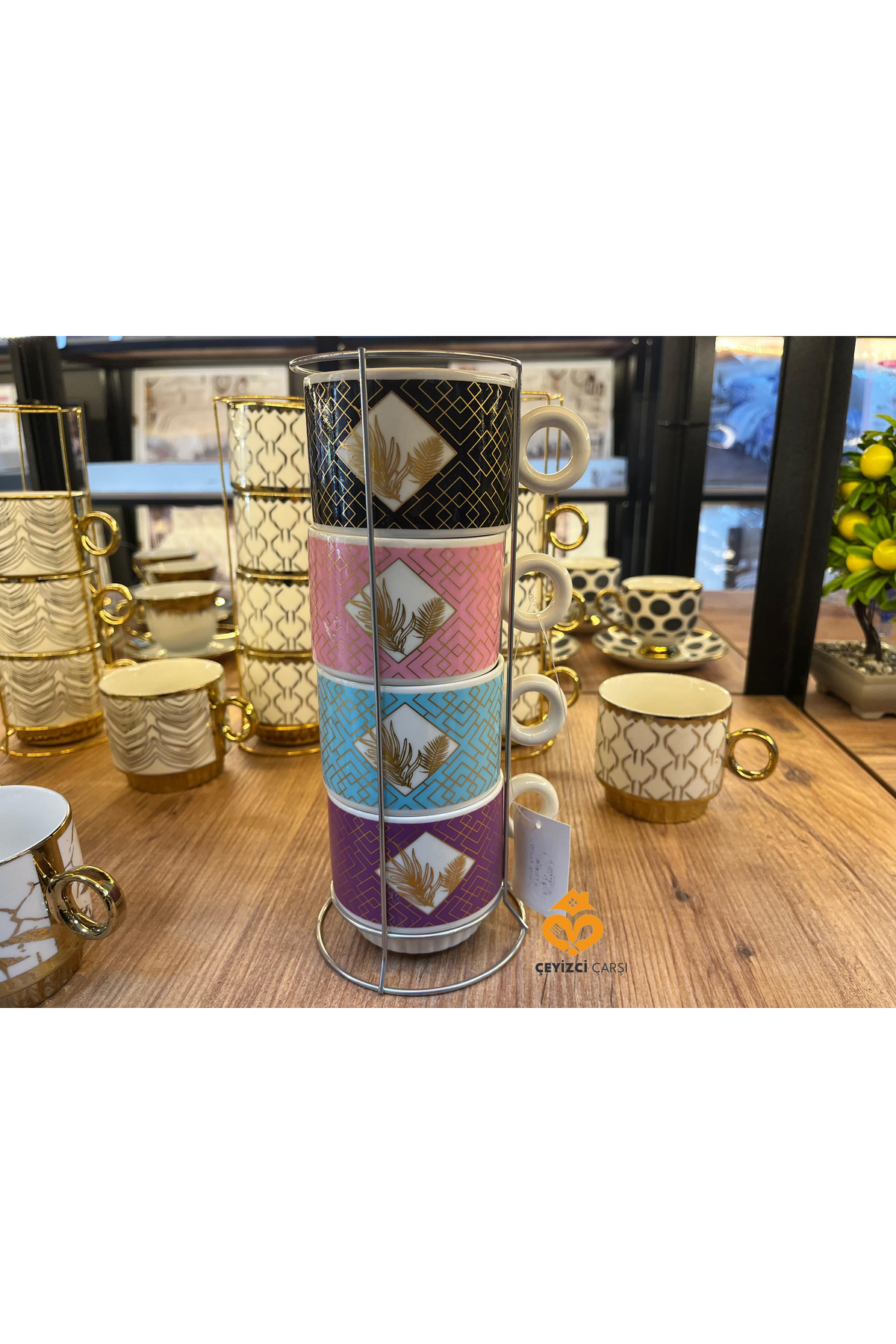 4 Kişilik Porselen Fincan Takımı – Metal Standlı Şık Kahve & Çay Seti 4 Kişilik Porselen Fincan Takımı – Metal Standlı Şık Kahve & Çay Seti Purebone-206 تک سایز