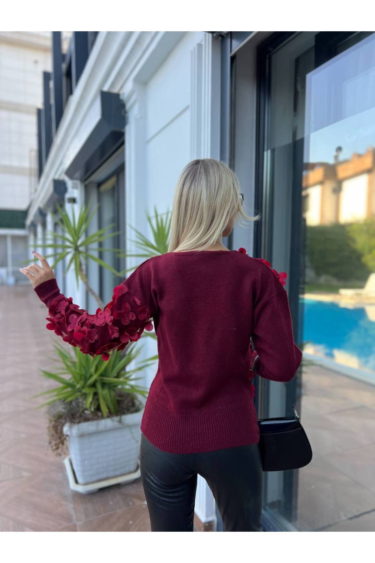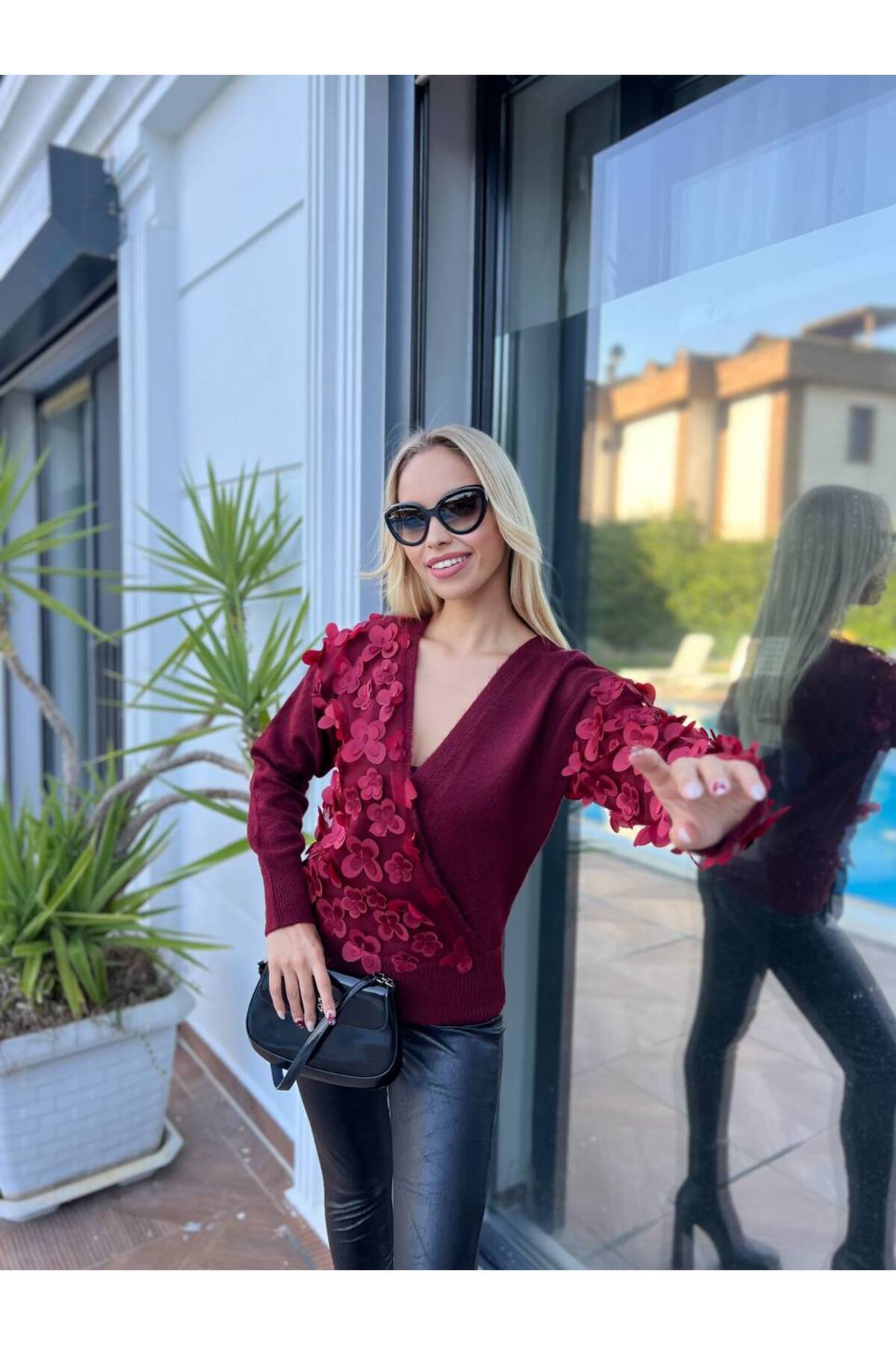 Çiçek Aksesuarlı Dantelli Kruvaze Kazak Çiçek Aksesuarlı Dantelli Kruvaze Kazak 25532 Standart
