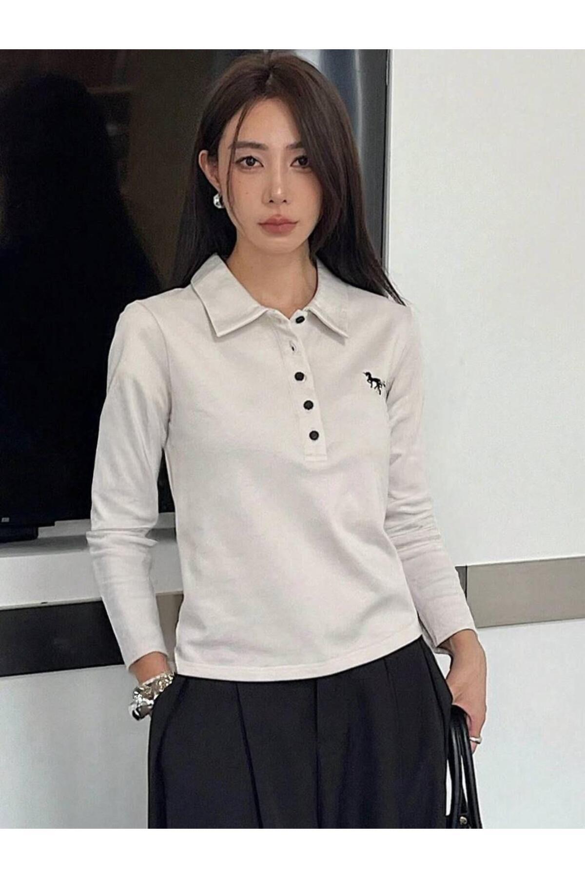 Düğmeli Polo Yaka Fit Uzun Kollu T-shirt Düğmeli Polo Yaka Fit Uzun Kollu T-shirt uzunkoltuttu XL