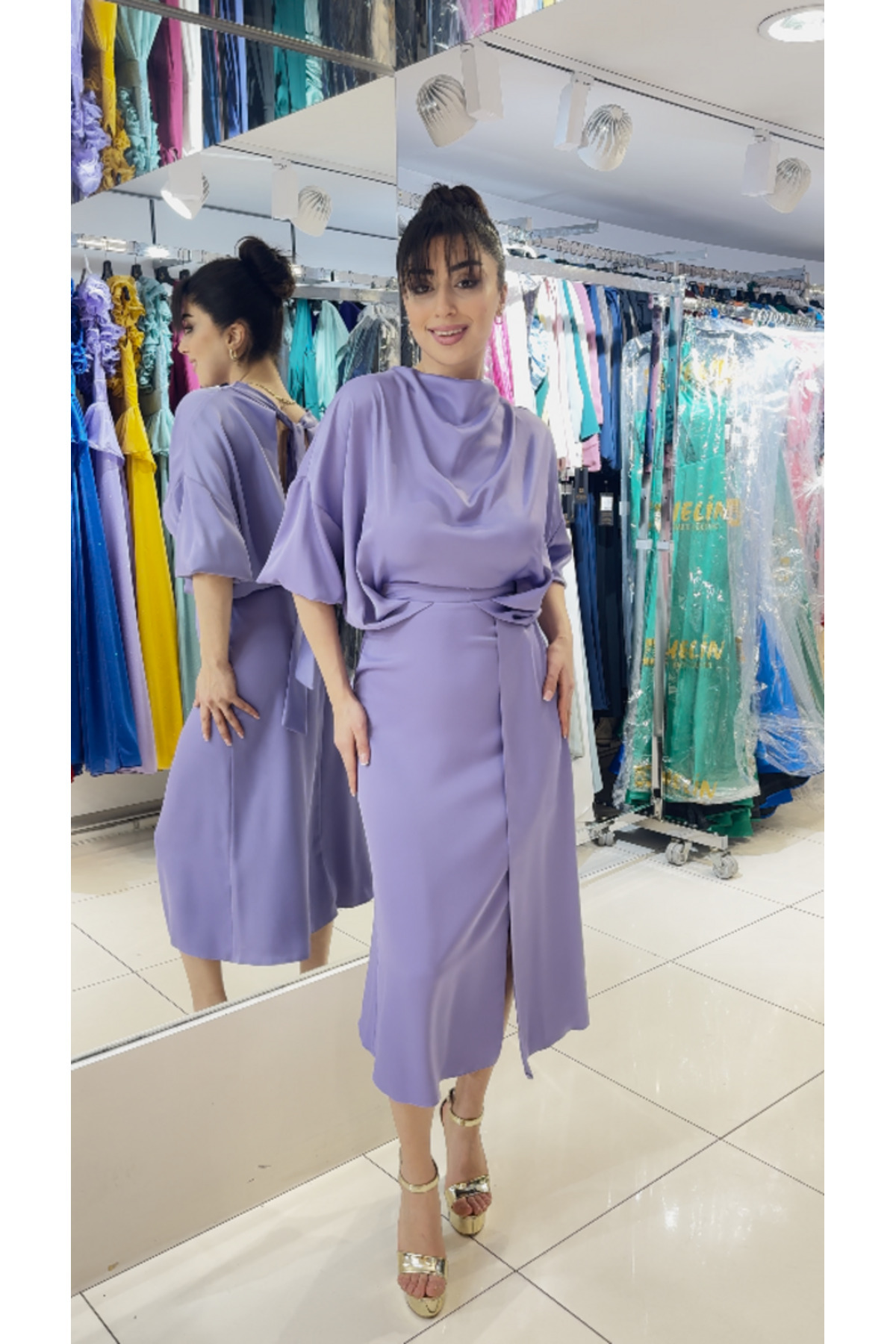 Salaş Dökümlü Yarasa Kol Midi Elbise - Şık ve Rahat Kadın Elbisesi Salaş Dökümlü Yarasa Kol Midi Elbise - Şık ve Rahat Kadın Elbisesi SR-56 40