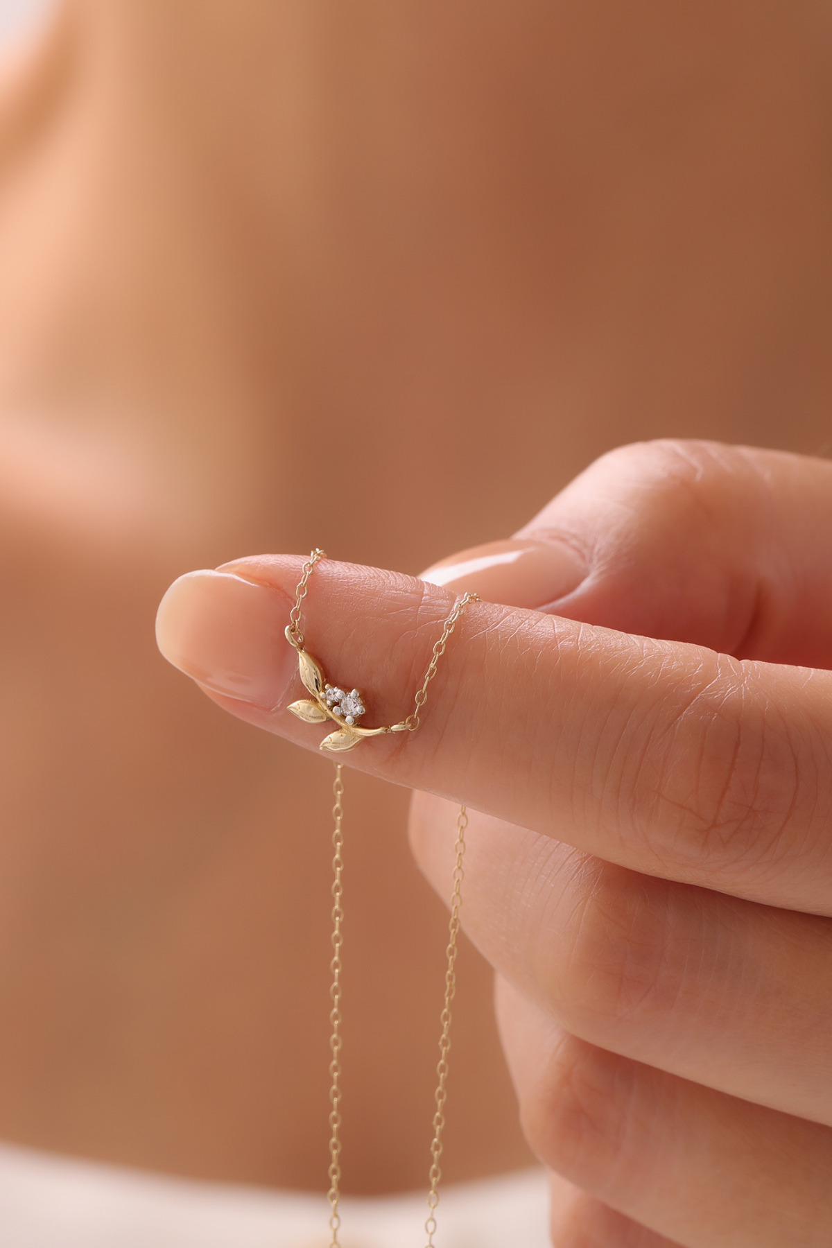 14 Ayar Altın Zirkon Taşlı Yaprak Deseni Kolye 14 Ayar Altın Zirkon Taşlı Yaprak Deseni Kolye GN20122 45 cm