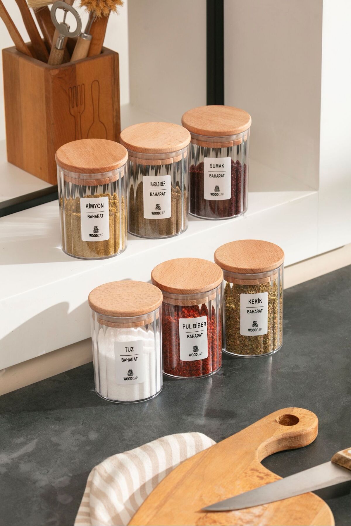 6'lı 450ml Vakumlu Ahşap Kapak Baharatlık Takımı Etiket Hediyeli Akrilik Saklama Kabı 6'lı 450ml Vakumlu Ahşap Kapak Baharatlık Takımı Etiket Hediyeli Akrilik Saklama Kabı TYC8F32F74C5F69675AFD4A00 تک سایز