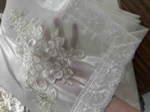 Güpürlü Dantel Inci Işlemeli Krem Çeyizlik Saten Lüks Bohça Güpürlü Dantel Inci Işlemeli Krem Çeyizlik Saten Lüks Bohça BOHÇAKRMLÜKS تک سایز