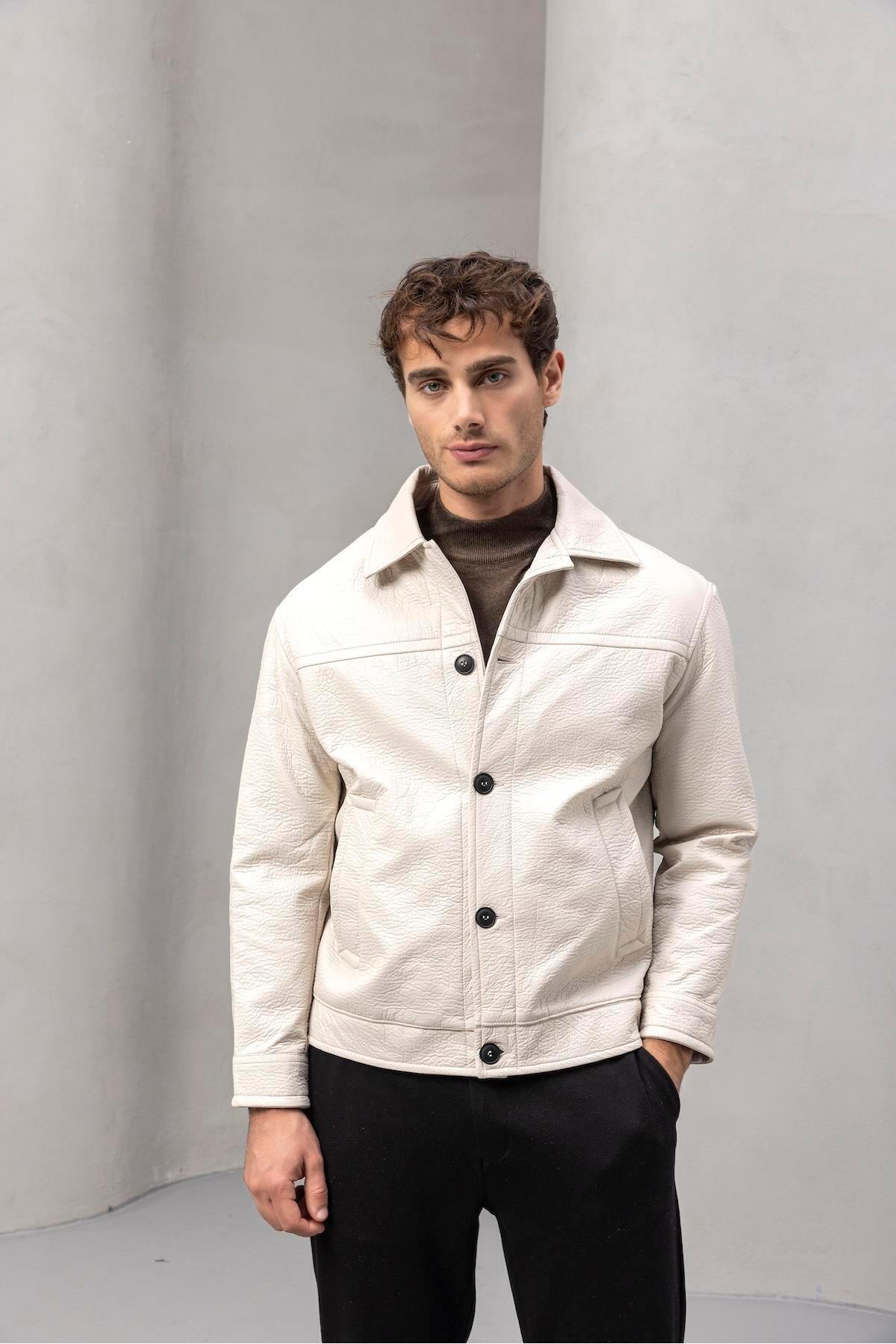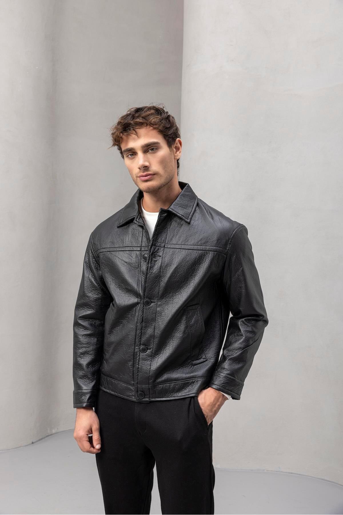 Denzel Düğmeli Yan Cepli Deri Görünümlü Erkek Ceket - Siyah Denzel Düğmeli Yan Cepli Deri Görünümlü Erkek Ceket - Siyah C10024 XL