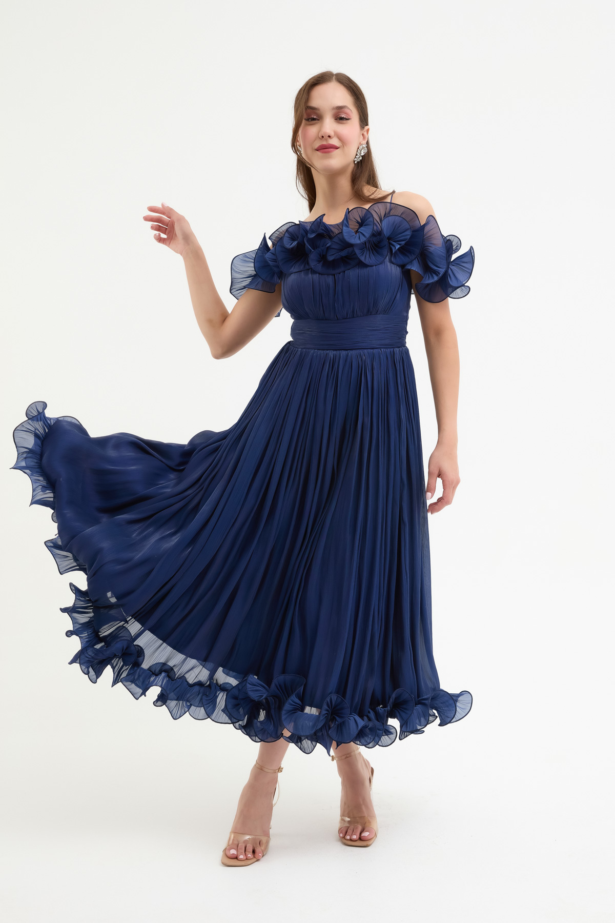 Kadın Bebe Mavi Yaka Detay Midi Abiye Elbise Kadın Bebe Mavi Yaka Detay Midi Abiye Elbise 25Y810139 44