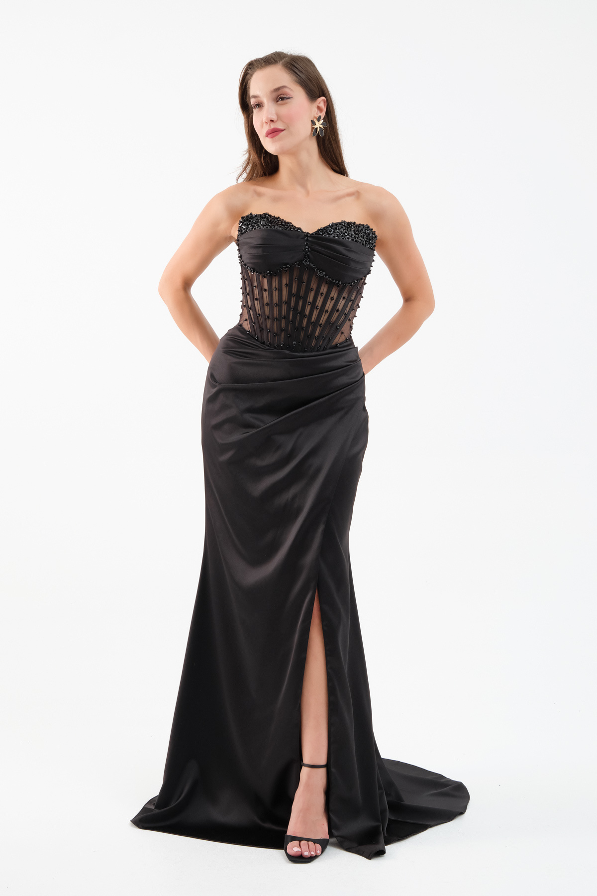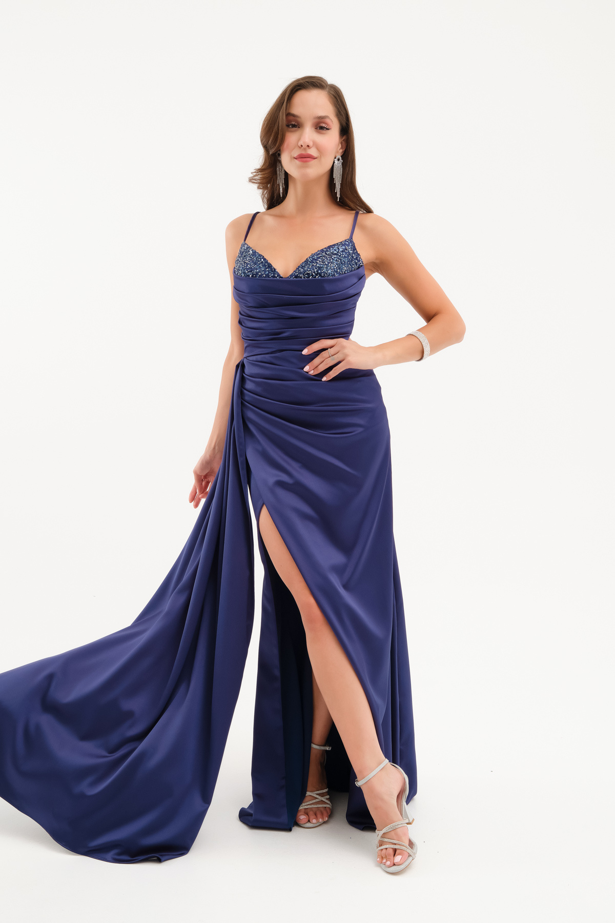 Kadın Lacivert Straplez Boncuklu Uzun Saten Abiye Elbise Kadın Lacivert Straplez Boncuklu Uzun Saten Abiye Elbise 25Y695505 42