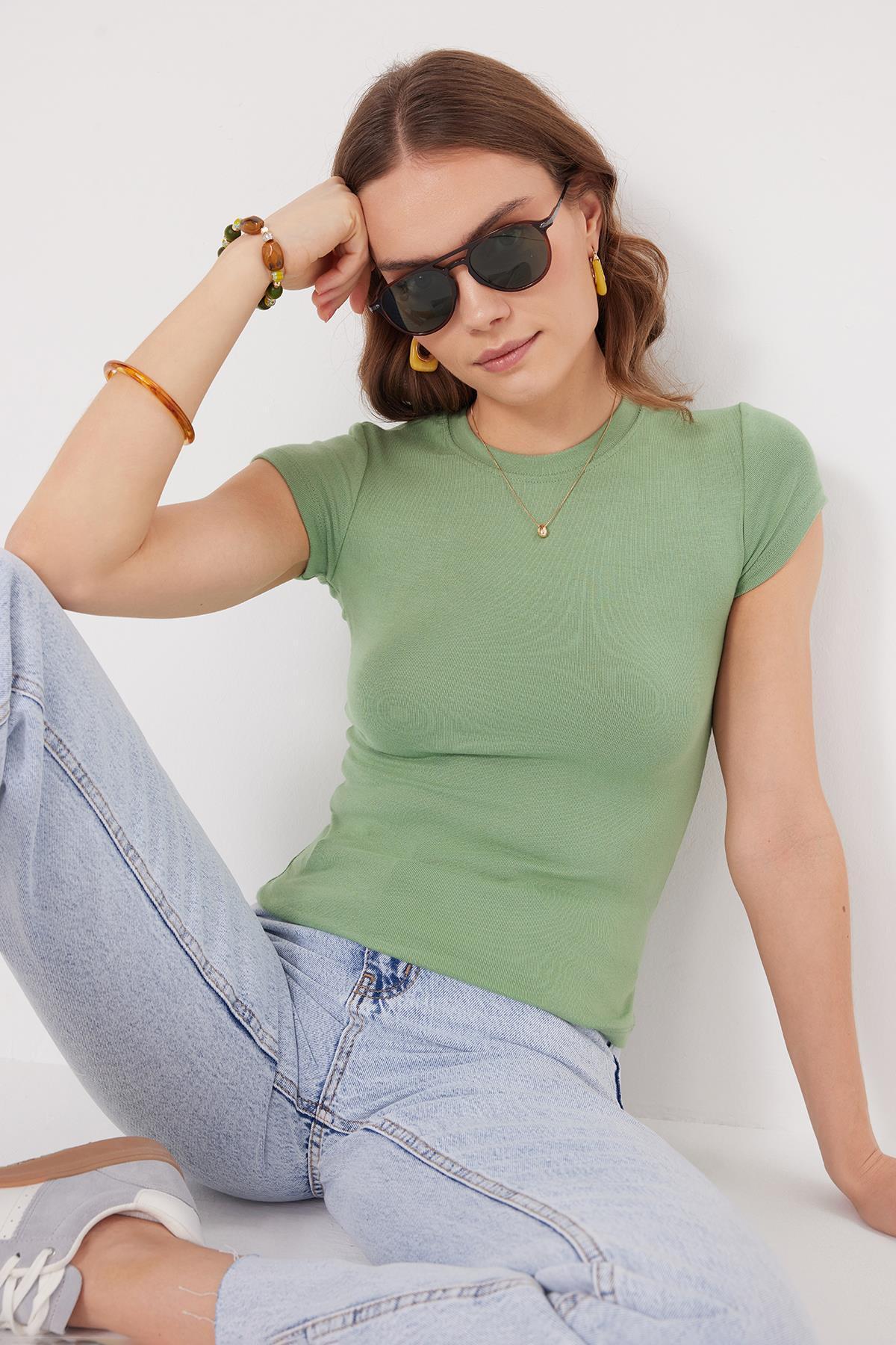 Kadın Regular Fit Klasik Kesim Bisiklet Yaka Viskon Kumaş Ultra Soft Yeşil Tişört Kadın Regular Fit Klasik Kesim Bisiklet Yaka Viskon Kumaş Ultra Soft Yeşil Tişört BDY25023 L
