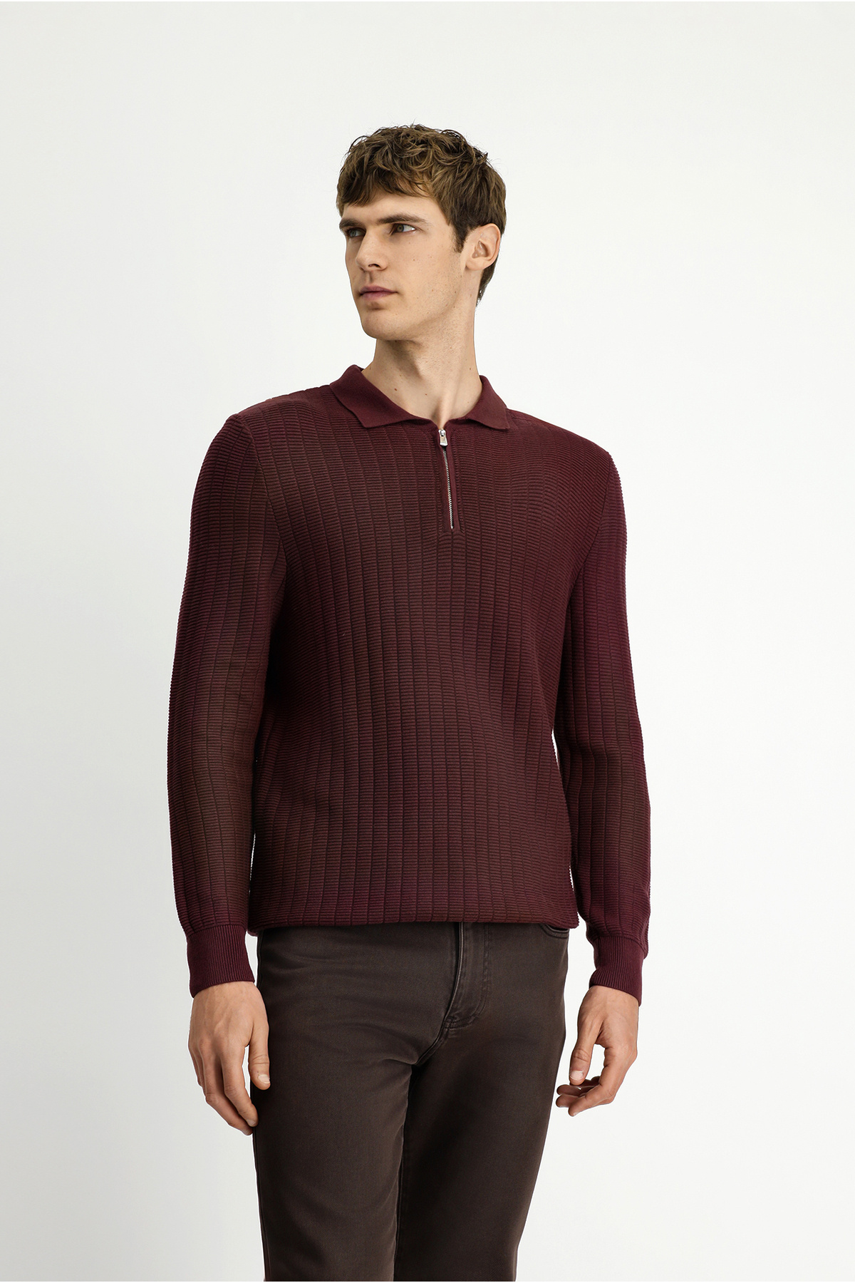 Regular Fit Armürlü Fermuarlı Polo Yaka Pamuklu Triko Kazak Regular Fit Armürlü Fermuarlı Polo Yaka Pamuklu Triko Kazak KK26DBM0AR001 7XL