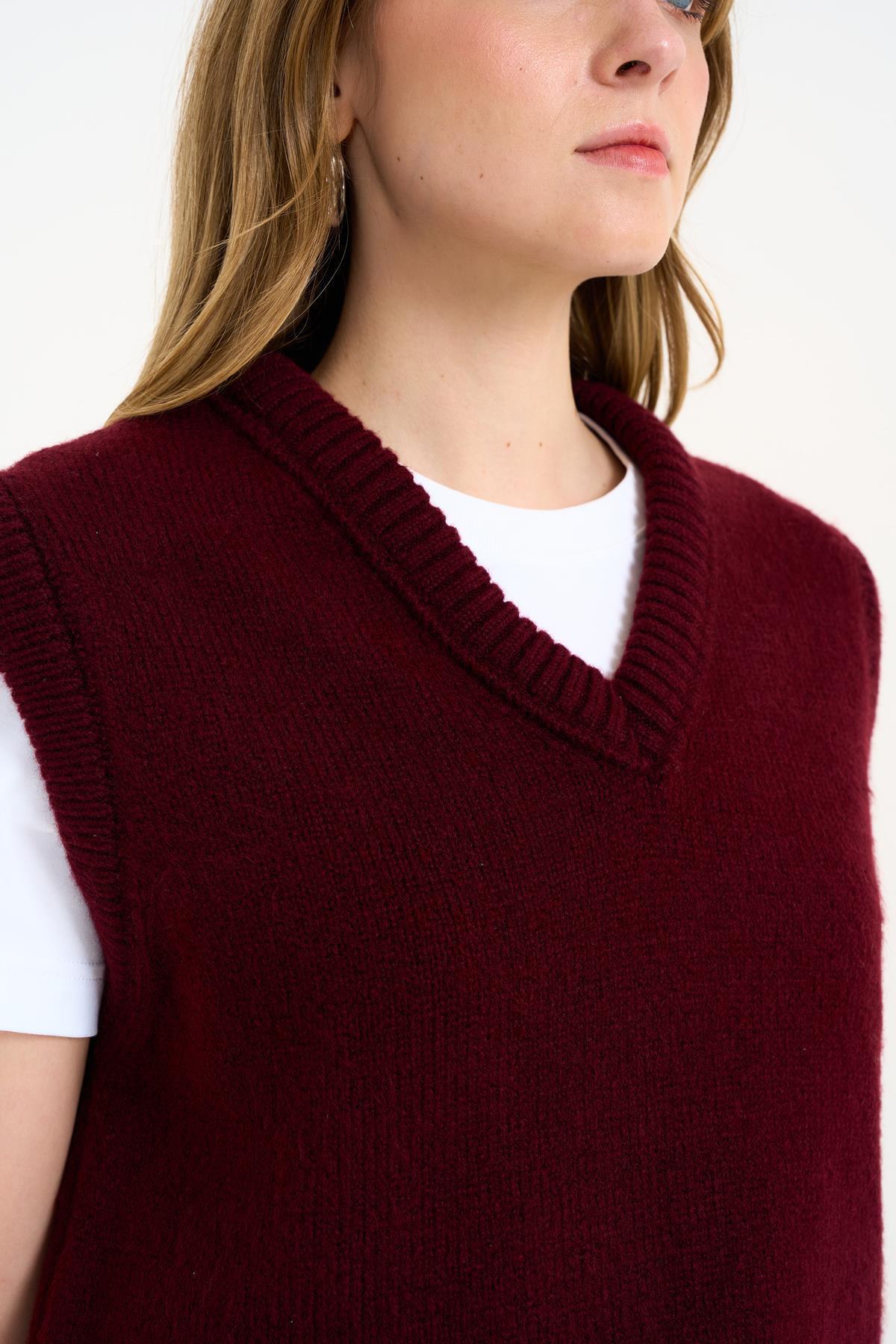 Kadın Bordo V Yaka Düz Süveter Kadın Bordo V Yaka Düz Süveter 4KKSV231011 Standart