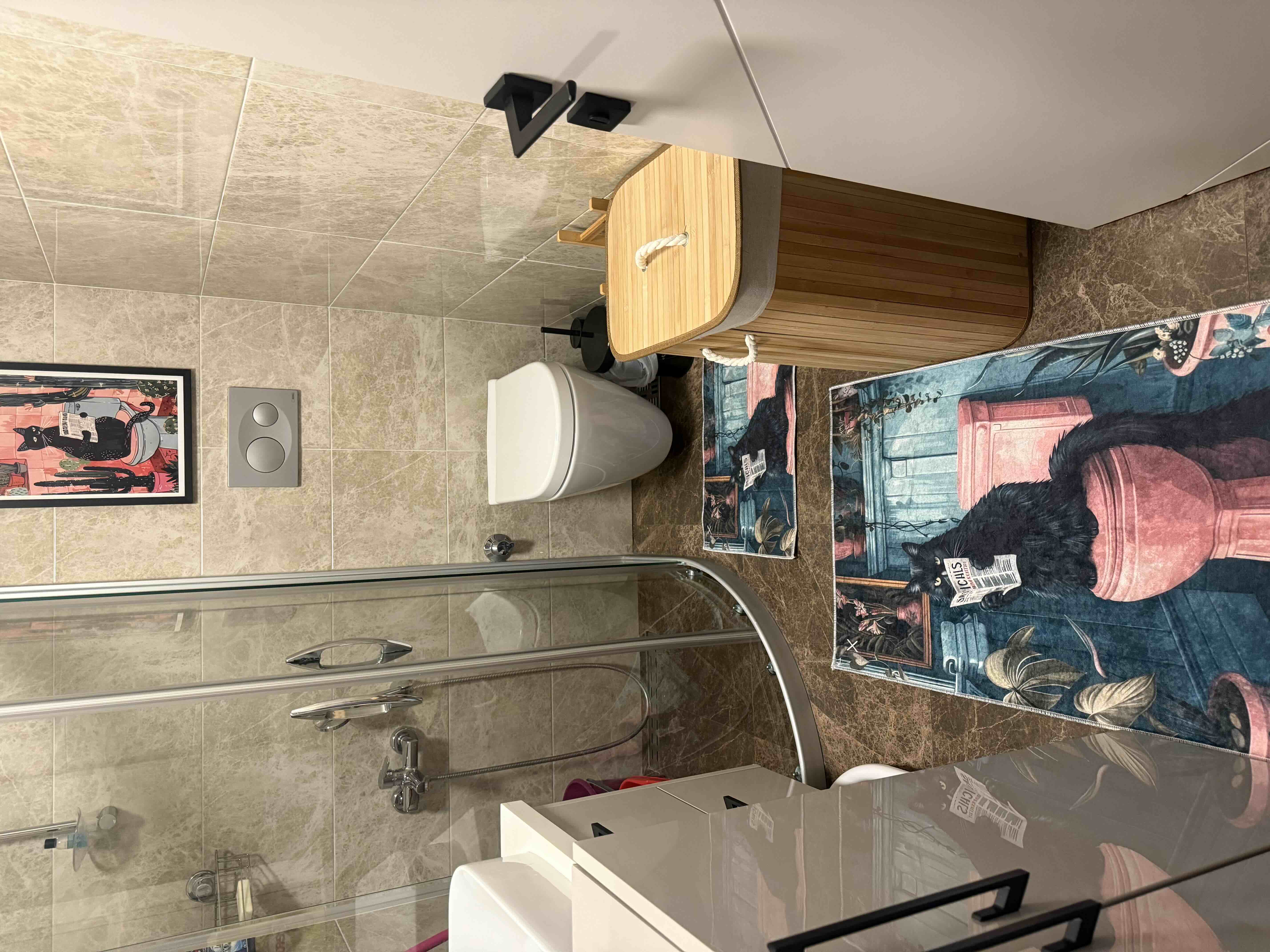 HARİKABİREV|BANYO VE TUVALET PASPASI GAZETE OKUYAN KEDİ MOTİFİ MODERN TASARIM|PASPAS HARİKABİREV|BANYO VE TUVALET PASPASI GAZETE OKUYAN KEDİ MOTİFİ MODERN TASARIM|PASPAS BNY-05 تک سایز