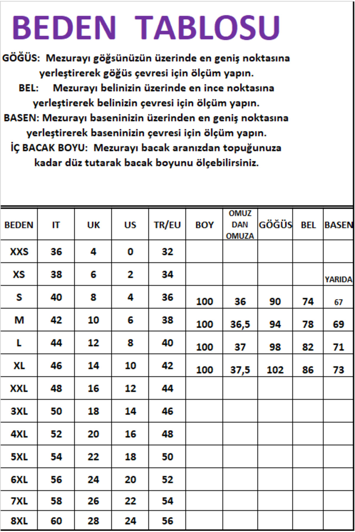 - Yıkama Talimatı : Maksimum 30 °C sıcaklıkta yıkayınız. Ağartıcı kullanmayınız. Tamburlu kurutma yapmayınız. Düşük sıcaklıkta ütüleyiniz. Kuru temizleme yapılamaz