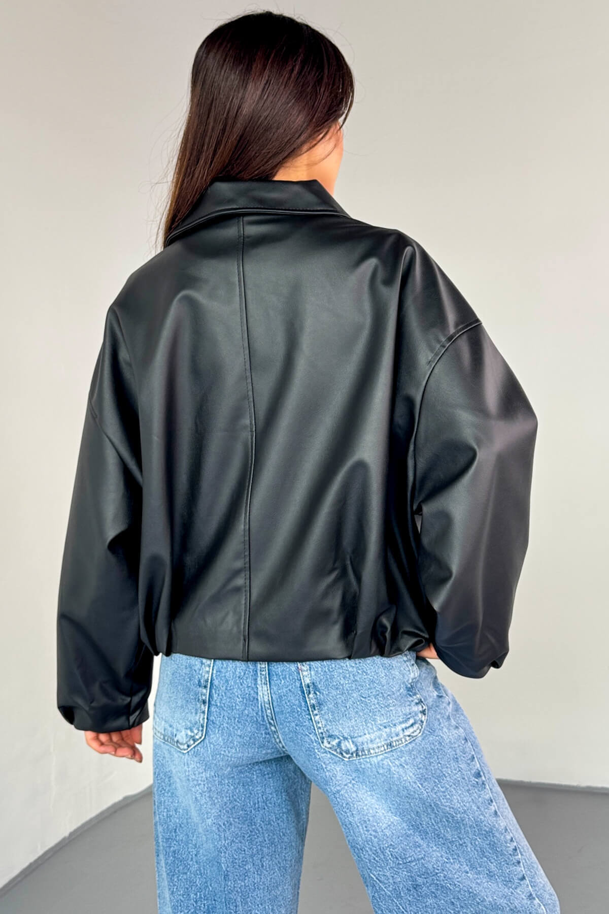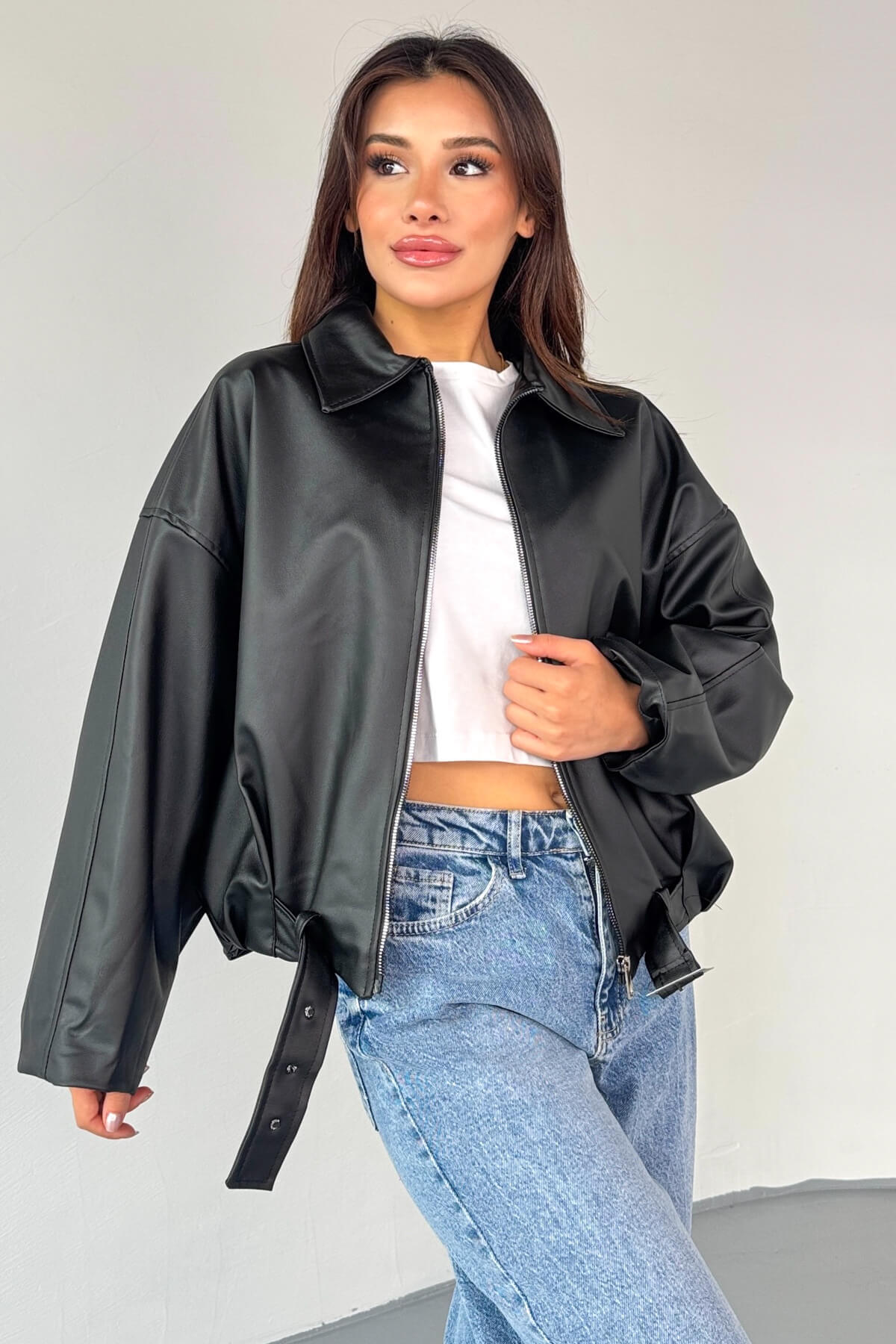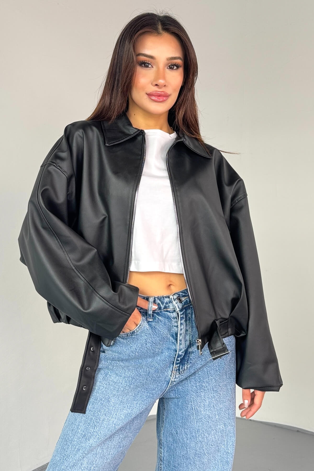 CKT-2017 Siyah Suni Deri Kemerli Astarlı Oversize Ceket CKT-2017 Siyah Suni Deri Kemerli Astarlı Oversize Ceket L
