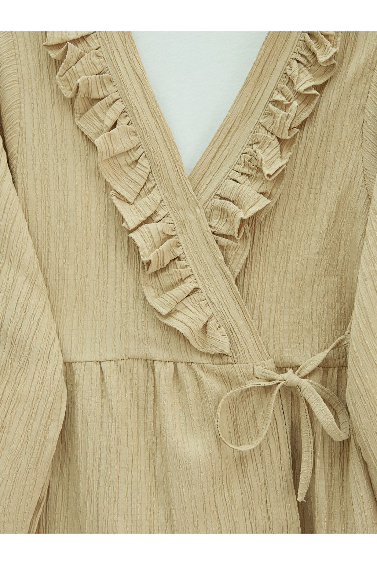 Yakası Fırfırlı Önü Bağlamalı Etekli Kimono Takım -Açık Vizon Yakası Fırfırlı Önü Bağlamalı Etekli Kimono Takım -Açık Vizon TY346-3074 L/XL