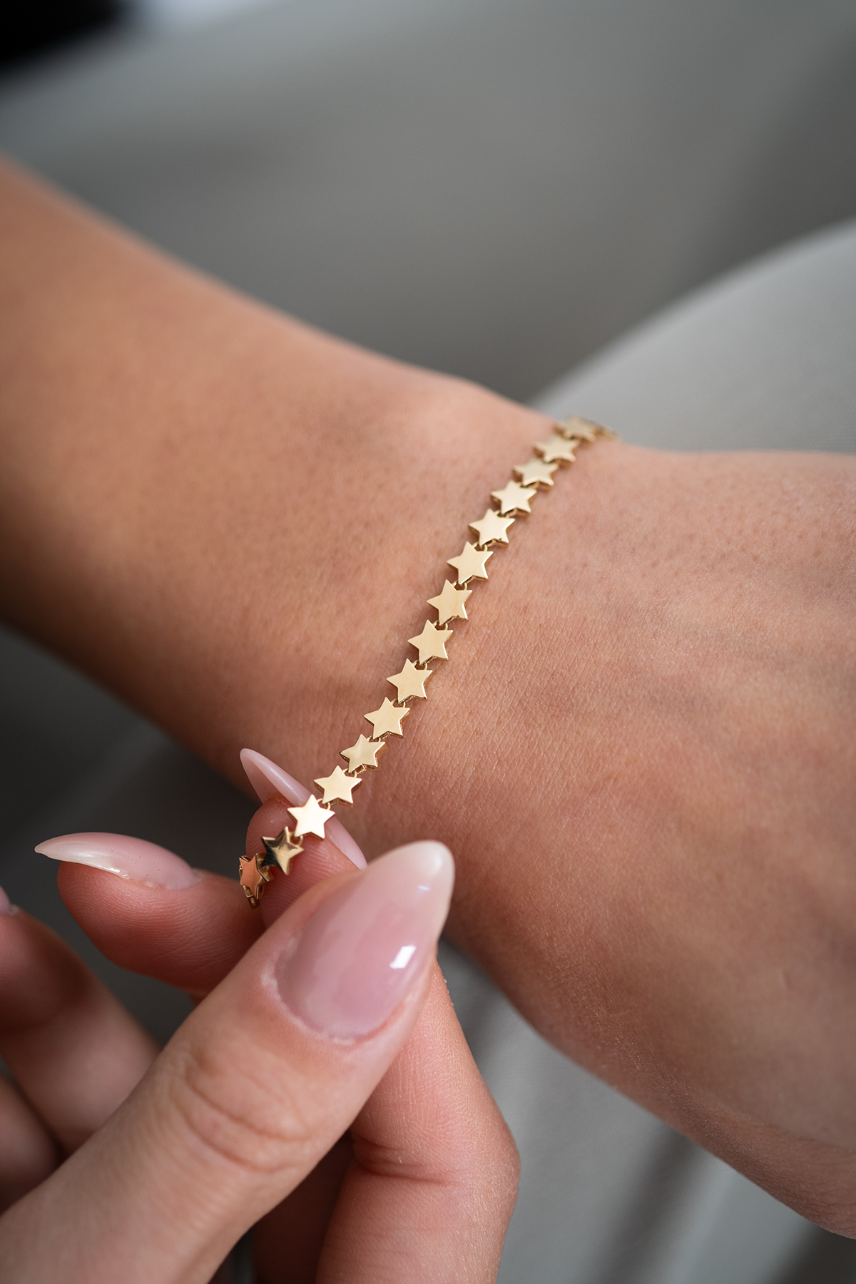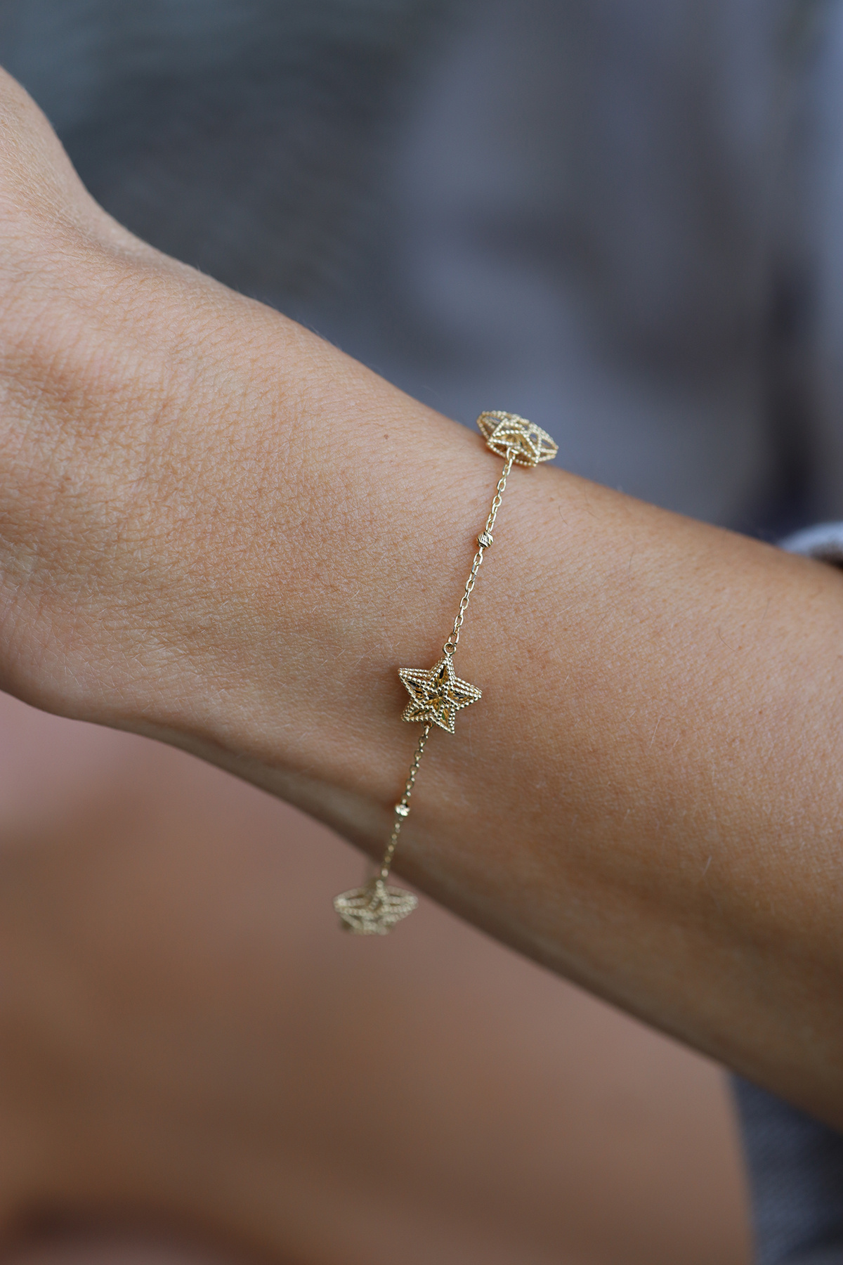 14 Ayar Altın Dorika Toplu Yükseltili Yıldız Detaylı Bileklik 14 Ayar Altın Dorika Toplu Yükseltili Yıldız Detaylı Bileklik BLK27070 تک سایز