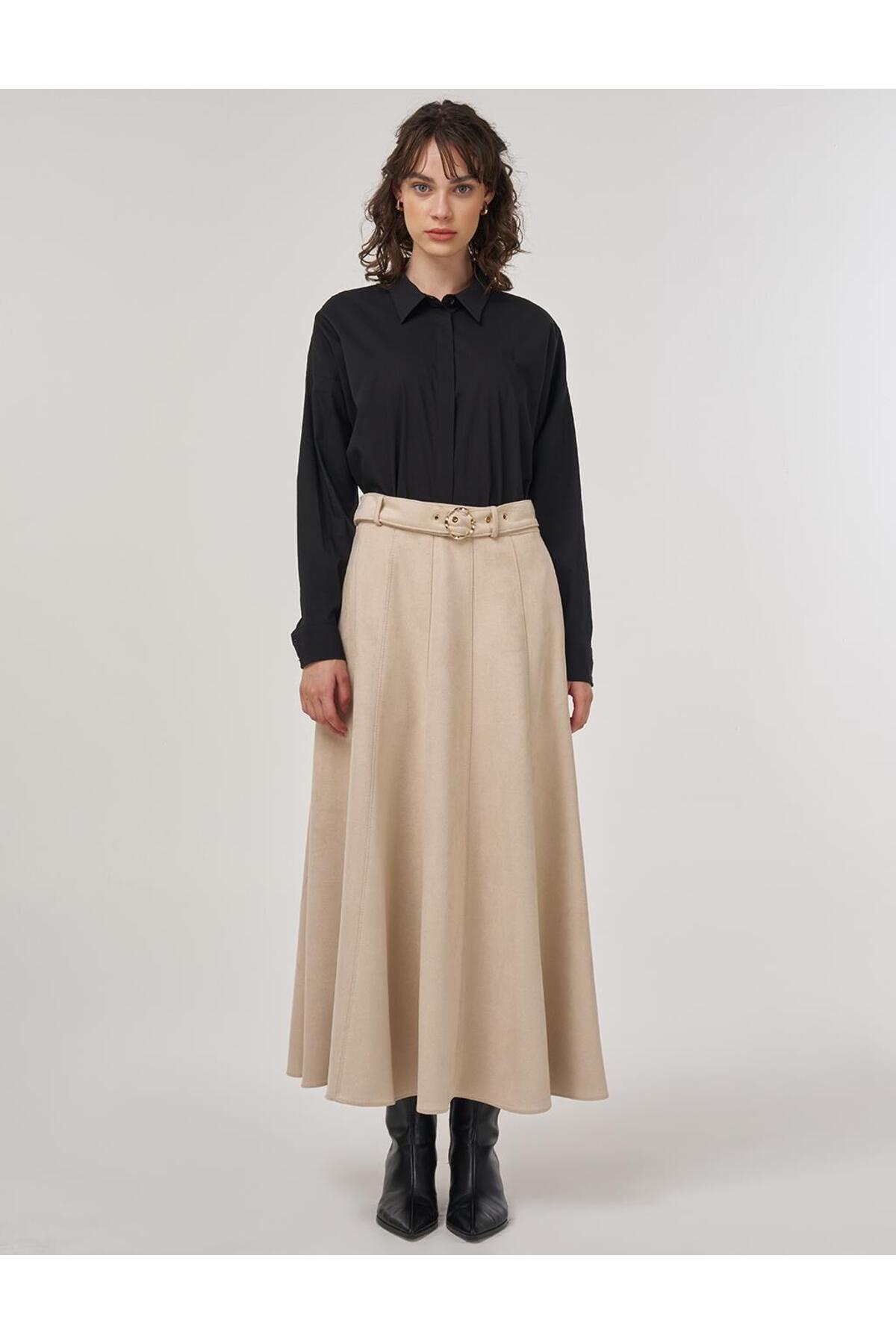 Kemerli Süet Kloş Etek Krem Kemerli Süet Kloş Etek Krem KA-A25-12026 42