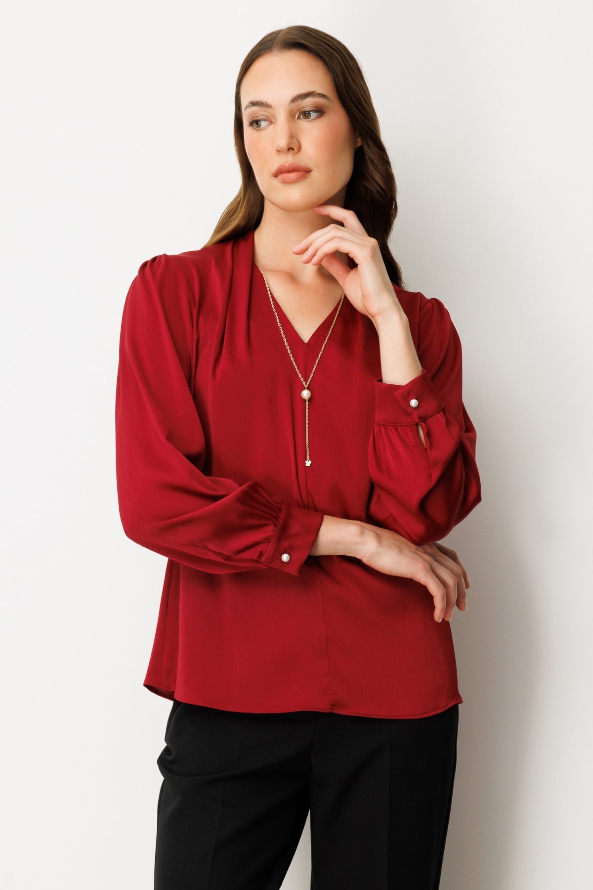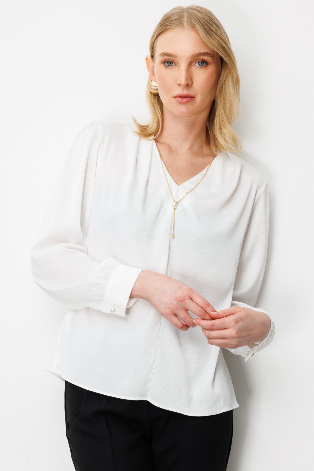 Kolye Aksesuarlı V Yaka Bluz Kolye Aksesuarlı V Yaka Bluz 26K.EKL.BLZ.03013.1 44