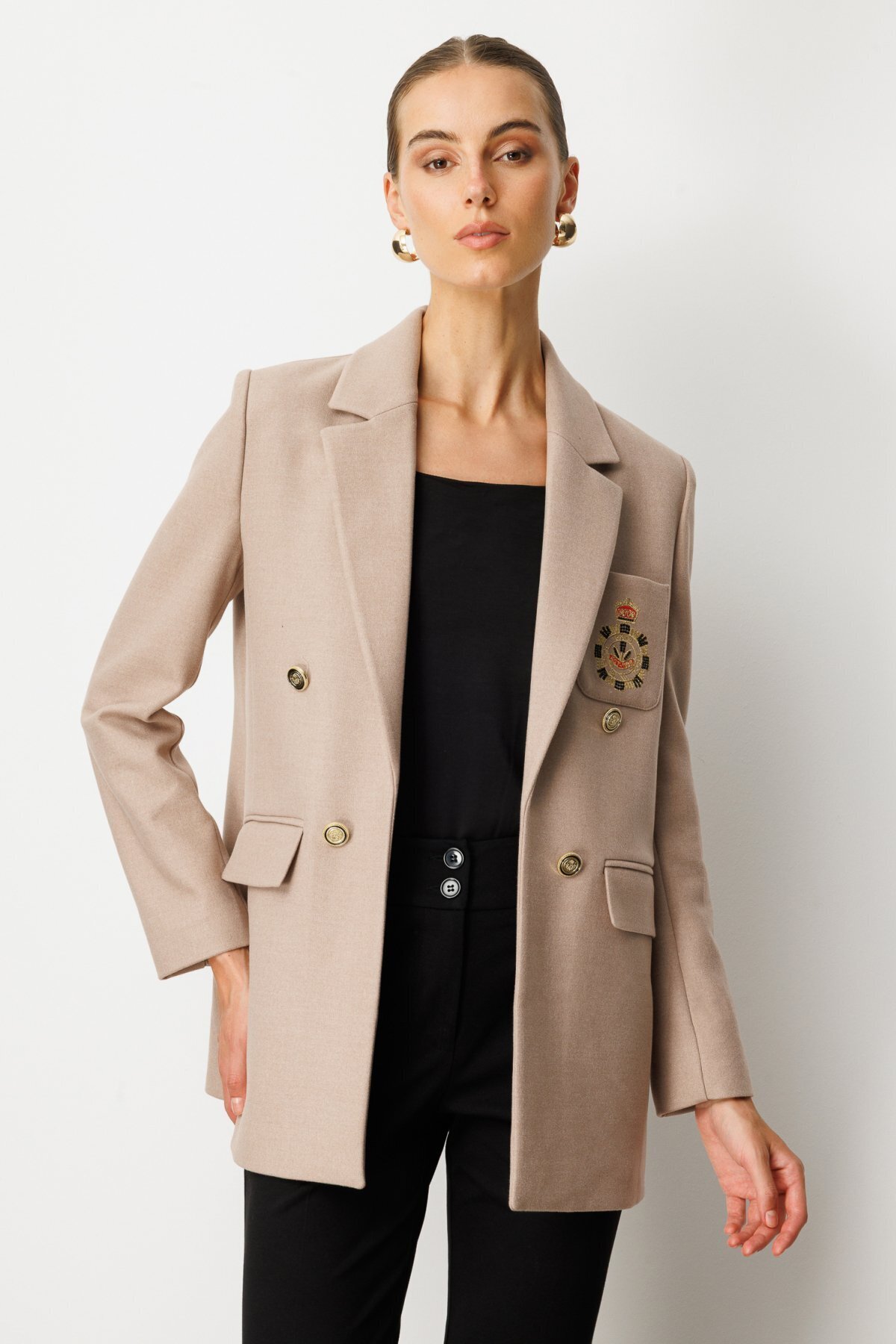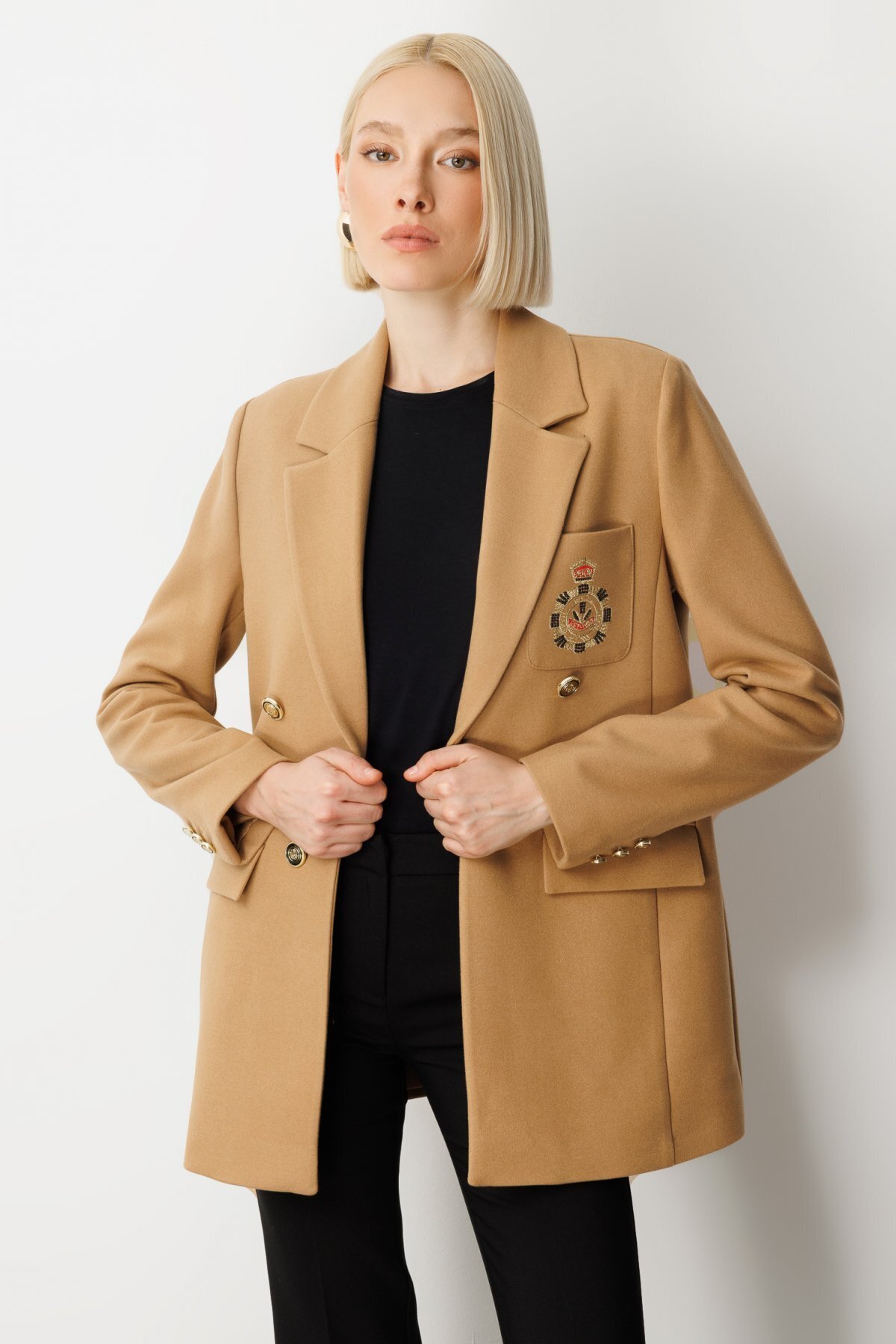 Önü Armalı Kapak Cepli Kaşe Ceket Önü Armalı Kapak Cepli Kaşe Ceket 26K.EKL.CKT.05071.1 44