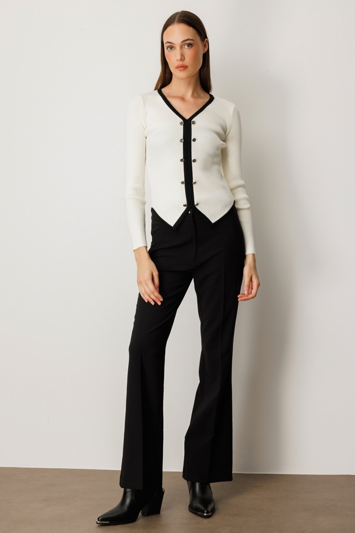 Asimetrik Kesim Fitilli Triko Kazak Asimetrik Kesim Fitilli Triko Kazak 26K.ON.KZK.65362.01 L