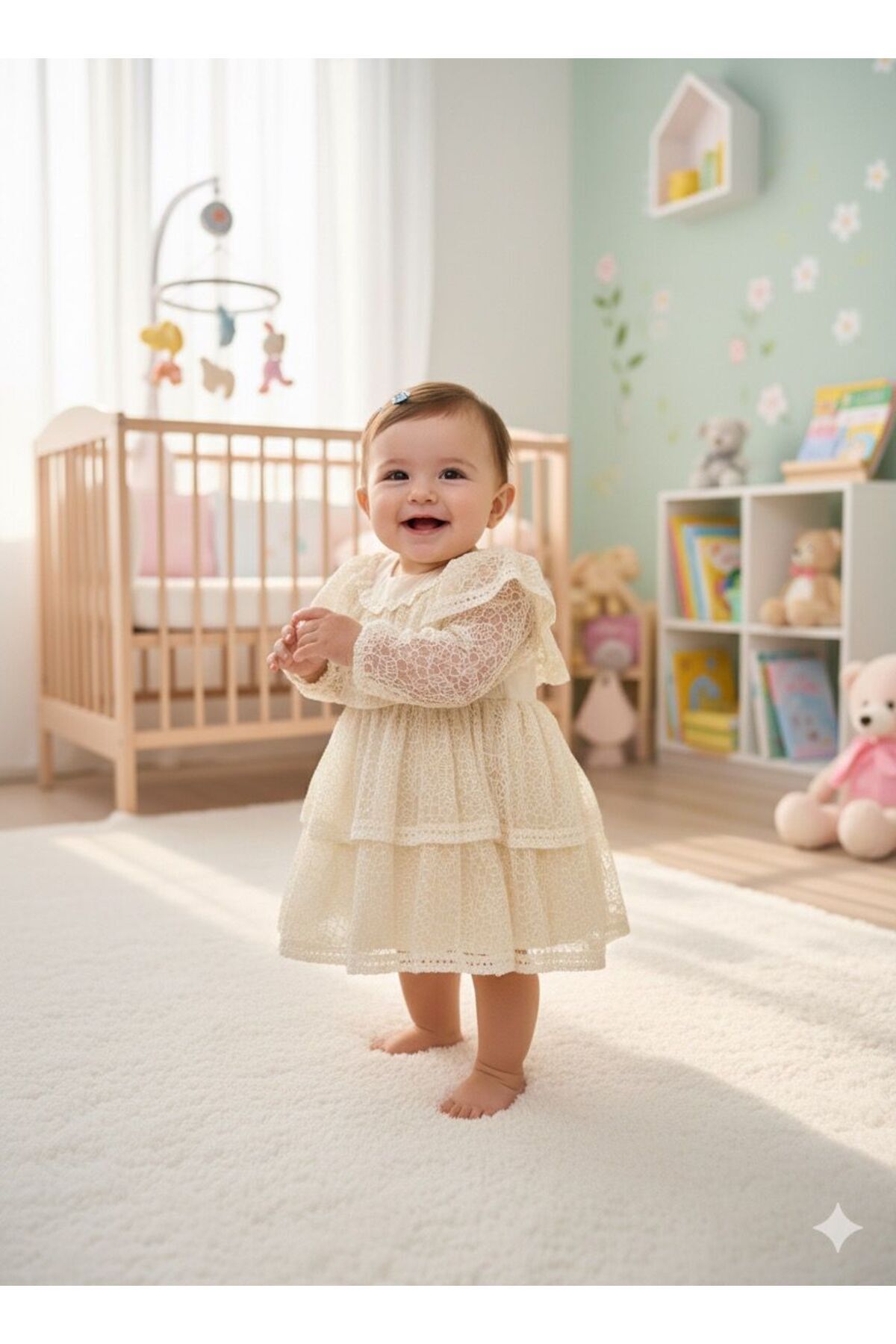 Fukukum Baby Dantelli Fiyonklu Bandanalı Kız Bebek Elbise Krem Fukukum Baby Dantelli Fiyonklu Bandanalı Kız Bebek Elbise Krem 5039IBıbe 9 - 12 Ay