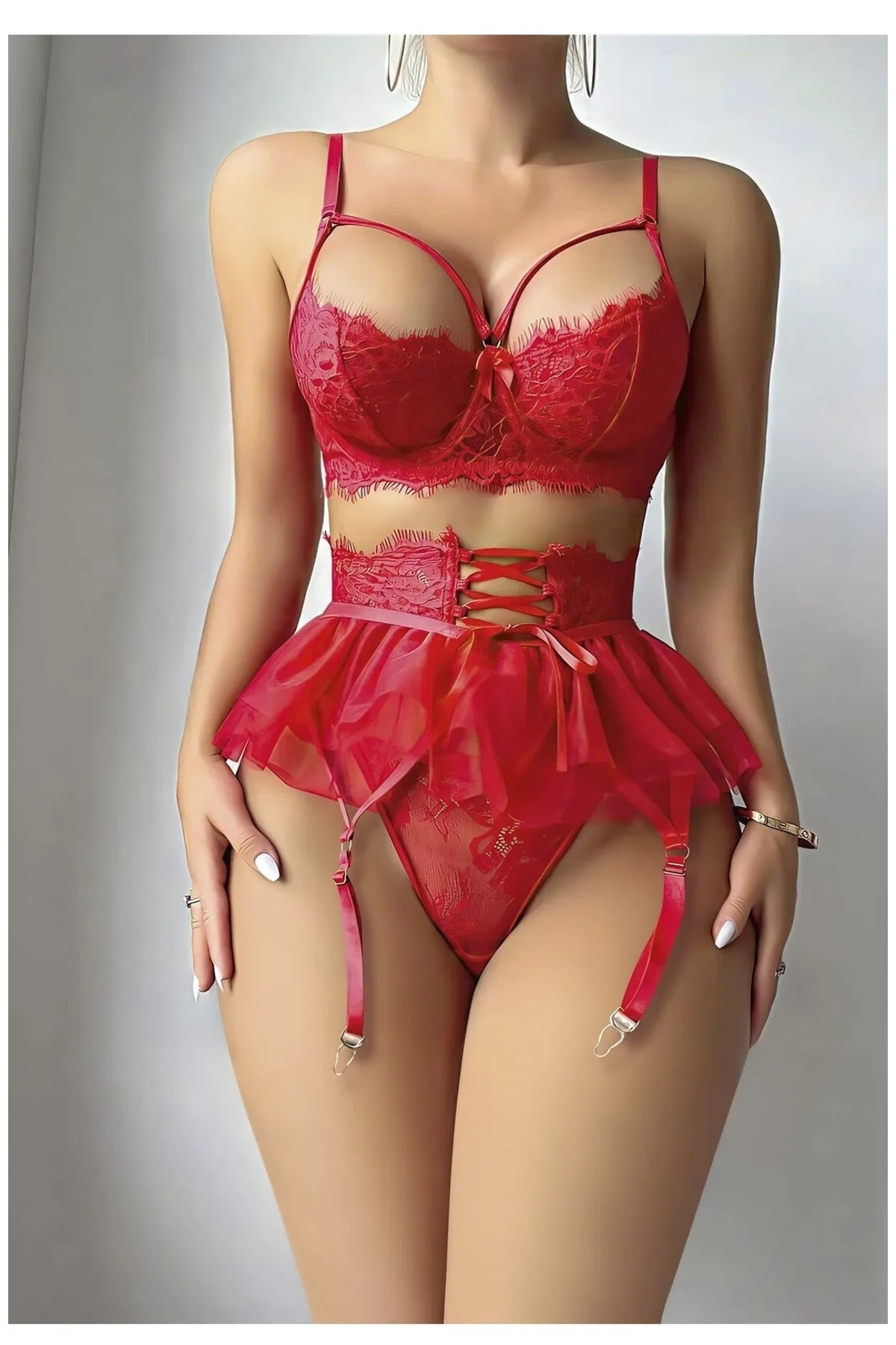 Fantezi Sexy Jartiyer Kostüm, Kırmızı Etekli Fantezi jartiyer Seti, Dantel İç Çamaşırı Fantezi Sexy Jartiyer Kostüm, Kırmızı Etekli Fantezi jartiyer Seti, Dantel İç Çamaşırı SİA-LESFK-96578 XL
