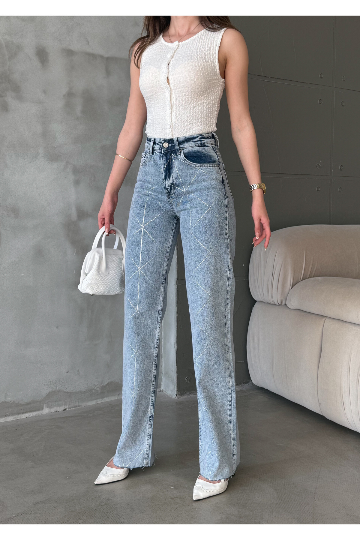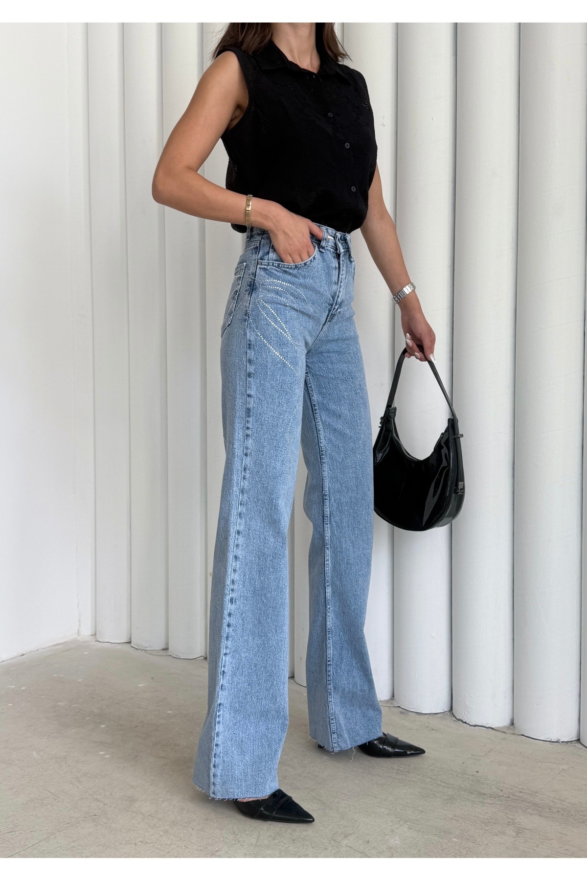 Kadın Mavi Parlak Taşlı Özel Tasarım Denim Straight Palazzo Kot Pantolon Kadın Mavi Parlak Taşlı Özel Tasarım Denim Straight Palazzo Kot Pantolon TYC0927690379M0BLZ2050004 44