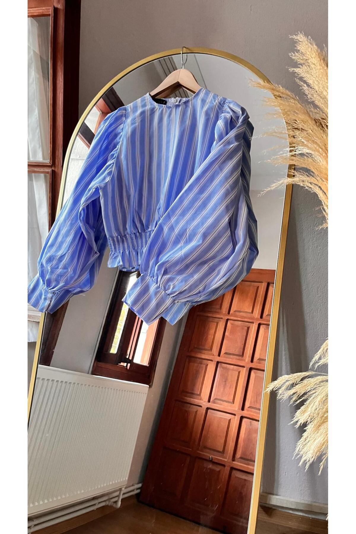 Kolları volanlı poplin kumaş mavi gömlek Kolları volanlı poplin kumaş mavi gömlek BYB3 L