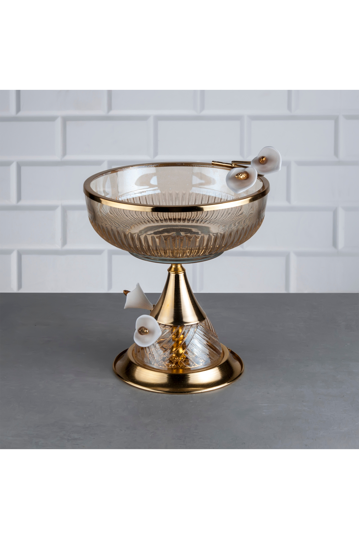 Pirinç Meyvelik Dekoratif Sunumluk Çiçek Dal Detaylı Şık Sofra Aksesuarı Pirinç Meyvelik Dekoratif Sunumluk Çiçek Dal Detaylı Şık Sofra Aksesuarı Divina-102 تک سایز