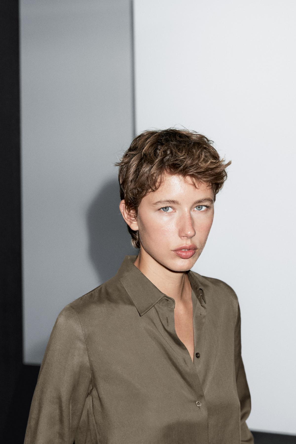 Yakalı dökümlü gömlek Yakalı dökümlü gömlek 00110779205153953 44