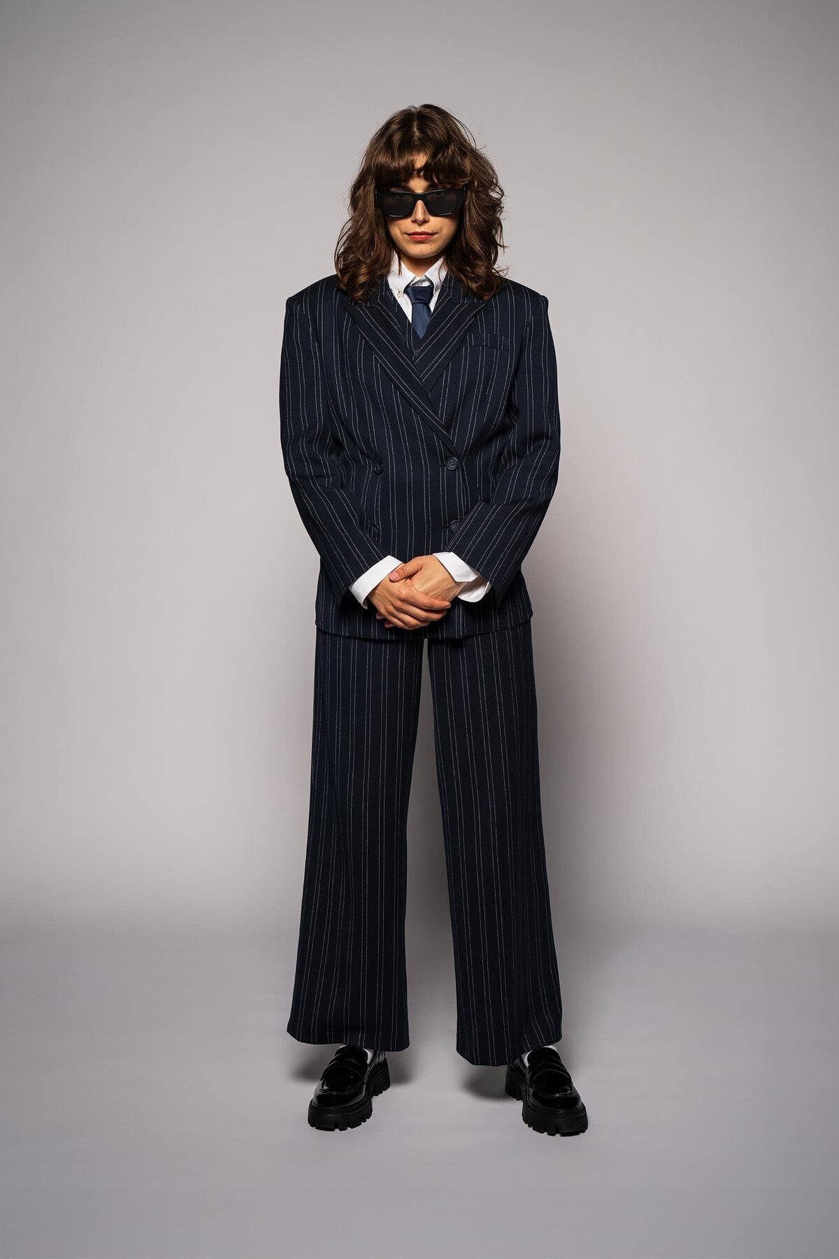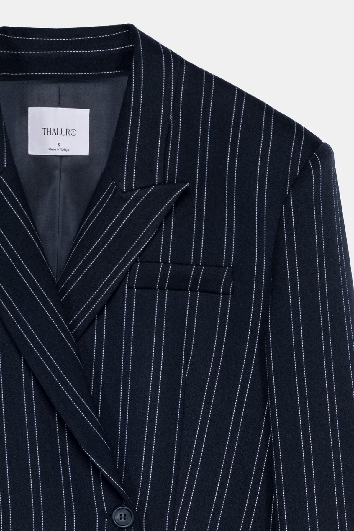 Kadın Lacivert Çizgili Oversize Blazer Kadın Lacivert Çizgili Oversize Blazer TLR7612 XL