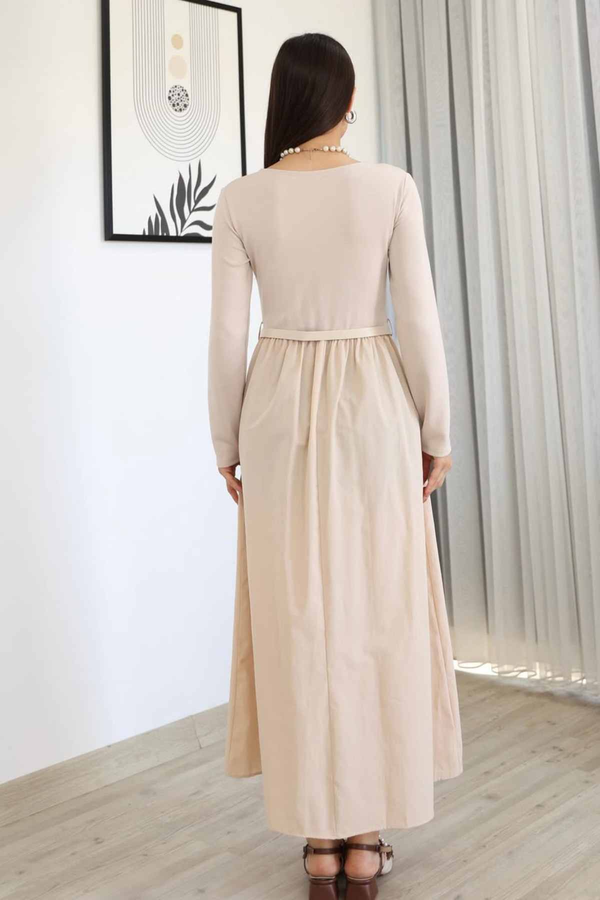 Kadın Bisiklet Yaka Uzun Kollu Kemerli İkili Renk Kombin Maxi Elbise Kadın Bisiklet Yaka Uzun Kollu Kemerli İkili Renk Kombin Maxi Elbise 2017 XL