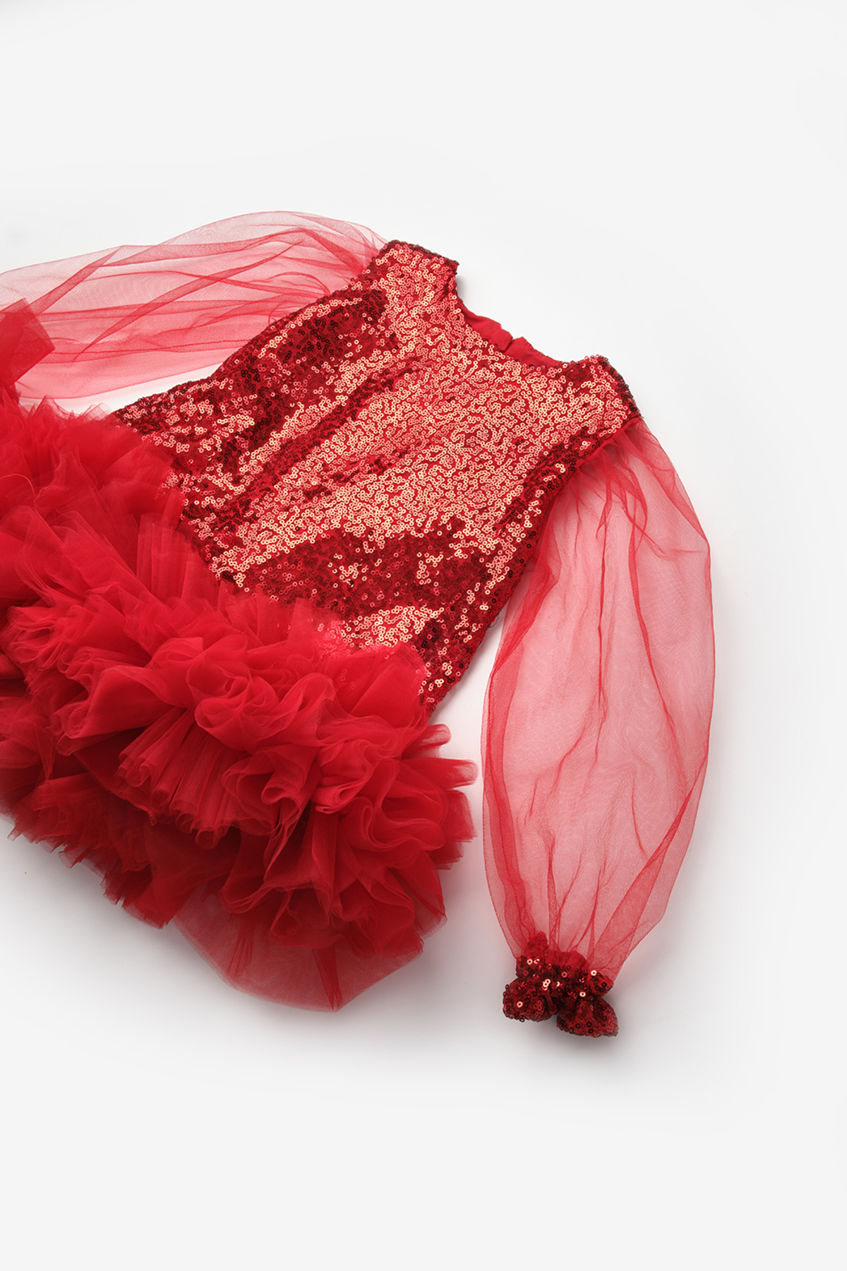 Kırmızı Pullu Etek Ucu Tüllü Kız Çocuk Elbise - Balenca Kırmızı Pullu Etek Ucu Tüllü Kız Çocuk Elbise - Balenca LM2006 8 Yaş