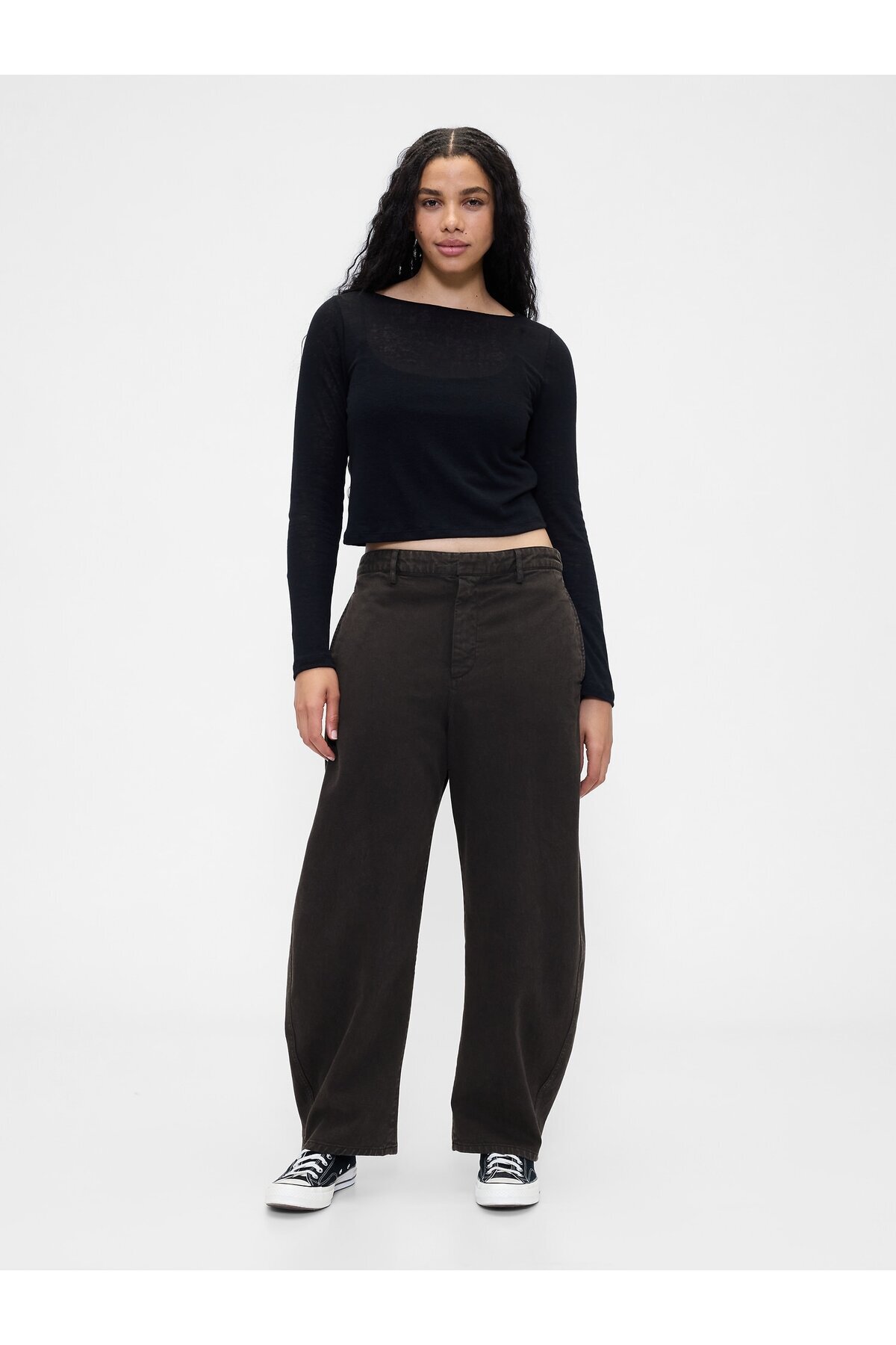 Kadın Siyah Mid Rise Twill Barrel Pantolon Kadın Siyah Mid Rise Twill Barrel Pantolon 800534 32