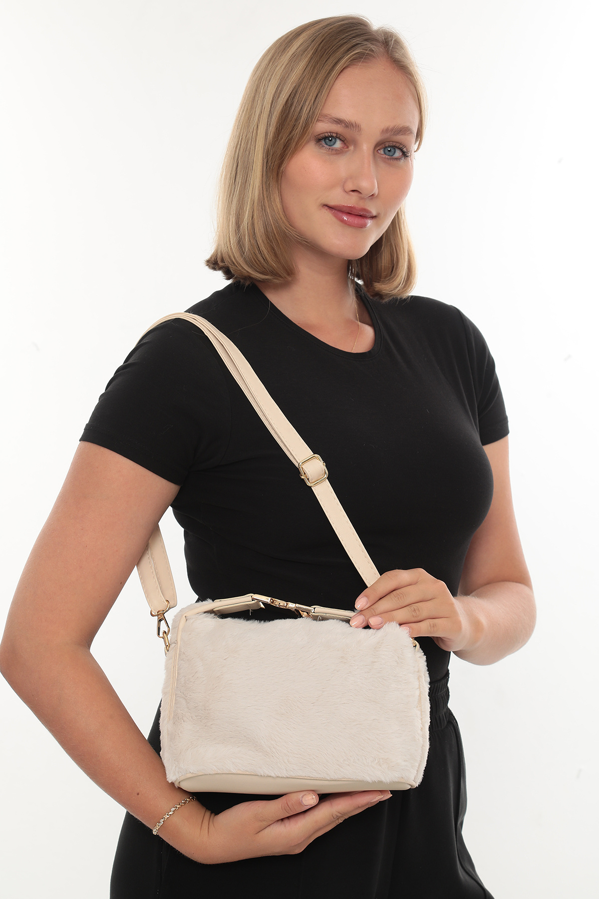 Krem Kadın Peluş Kilit Detay Günlük Şık El Omuz Çapraz Çanta Krem Kadın Peluş Kilit Detay Günlük Şık El Omuz Çapraz Çanta KL002 تک سایز