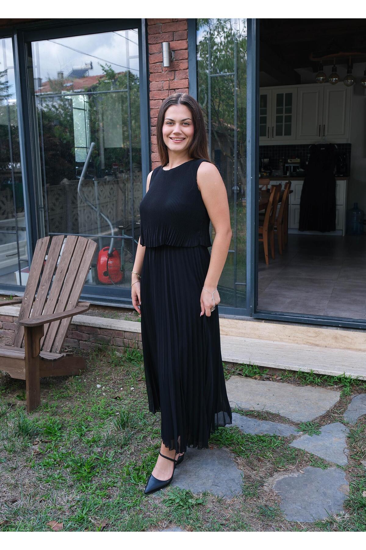 Piliseli Uzun Şifon Elbise Siyah Piliseli Uzun Şifon Elbise Siyah 152132_001 XL